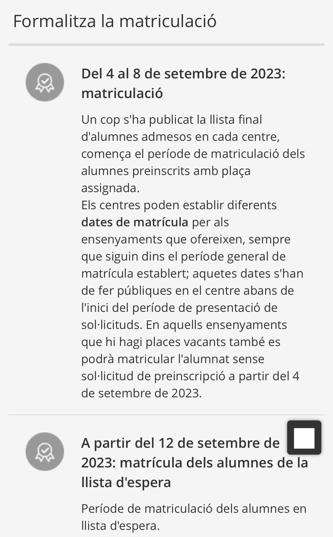 Ens veiem el dia 1 de setembre, matrícules del 4-7 de setembre. També matrícula pel curs 23/24, nous alumnes GES IOC del 1-7 de setembre. Horari:9-13h