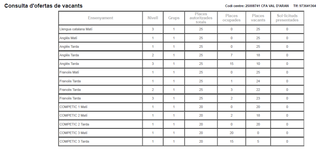 Bon dia Carme! Desencusa non auiem vist eth missatge. Era EOI aufrirà eth cors on line e er examens serà presenciau en Lleida. Era preinscripcion ei aguesti dies.