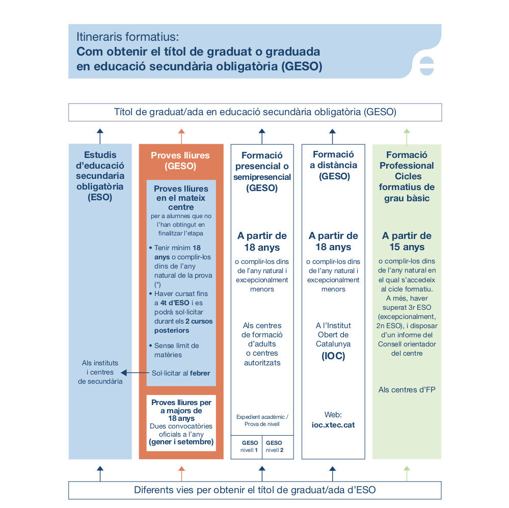 Itineraris formatius. Com obtenir el títol de graduat en ESO? Font: Carpeta de l’Orientació del Consorci d’Educació de Barcelona Graduat en ESO al CFA Victorina Vila Graduat en ESO a l’IOC Proves lliures Graduat en ESO majors 18 Tràmit d’homologació i convalidació de títols estrangers no universitaris Homologació d’estudis corresponents a ESO i Batxillerat d’altres països