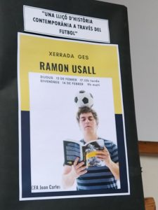 L’historiador i professor de secundària Ramon Usall i Santa ha ofert una xerrada a l’alumnat de GES del CFA aquest aquest 2n trimestre. Amb el títol “Una lliçó d’història contemporània a través del futbol”, Usall va fer un recorregut exhaustiu per tot seguit d’esdeveniments esportius que han tingut especial importància històrica, social i política des de finals del segle XVIII i fins al XX. Amb les anècdotes i les explicacions interessants sobre equips de futbol o jugadors es va guanyar de seguida l’auditori, que va sortir molt content de la xerrada i amb un munt de coses noves apreses del món de l’esport. Sabíeu, per exemple, que el Real Madrid el van fundar dos germans catalans? O que en un equip d’Algèria hi jugava un premi Nobel de literatura? Que als camps d’extermini nazi es jugava a futbol amb lliga i tot? I que la reunificació d’Alemanya es fa efectiva el diumenge següent a la caiguda del mur en un partit de futbol?