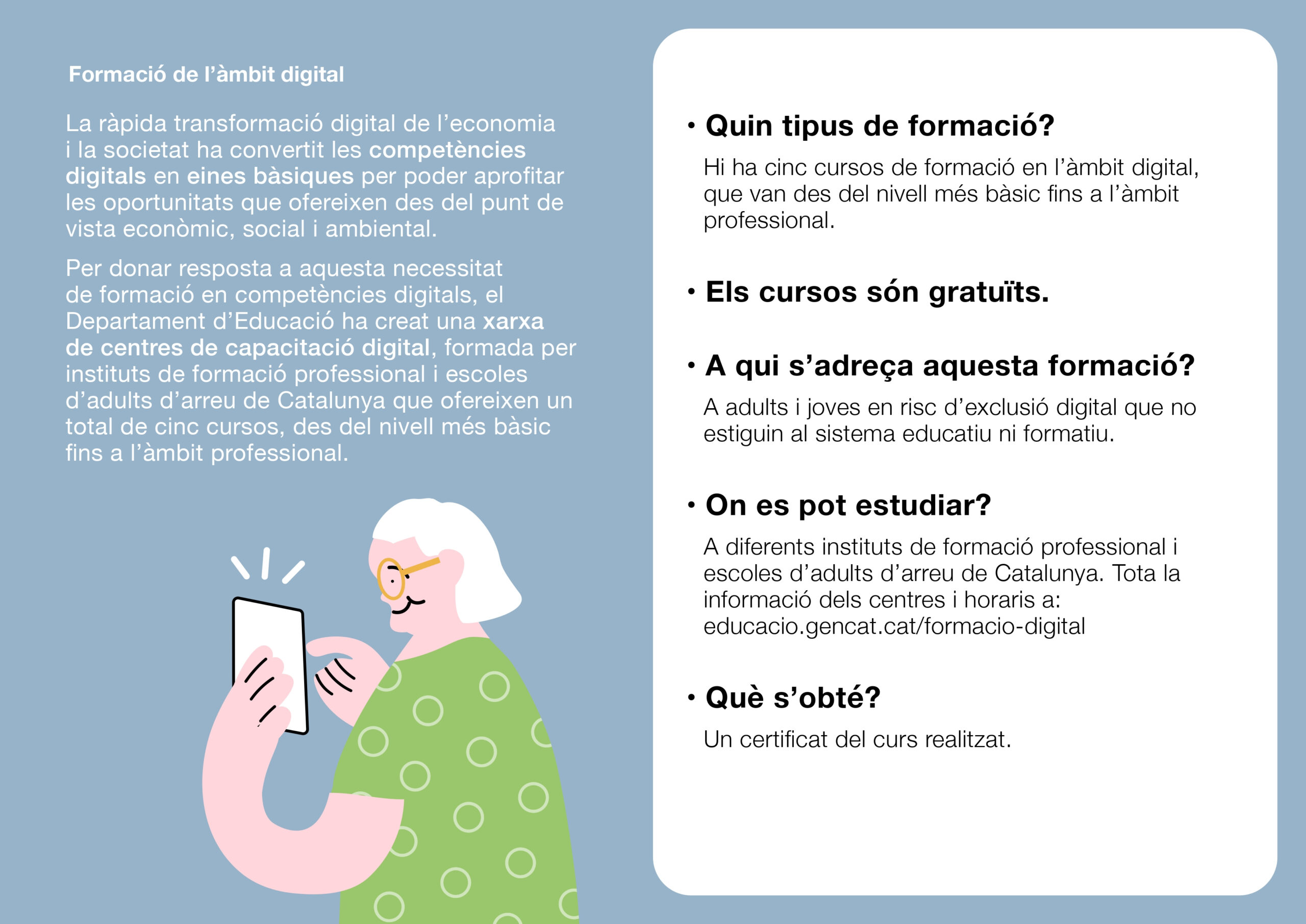 Observació.- La matrícula dels cursos de Capacitació Digital és directa, no hi ha reserva prèvia pel procediment de preinscripció.