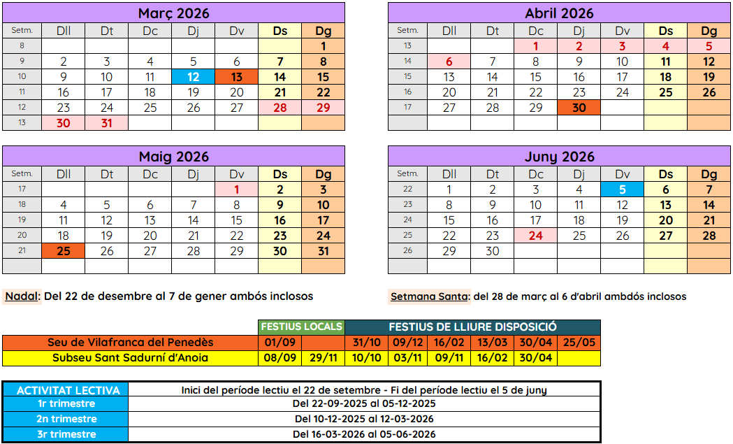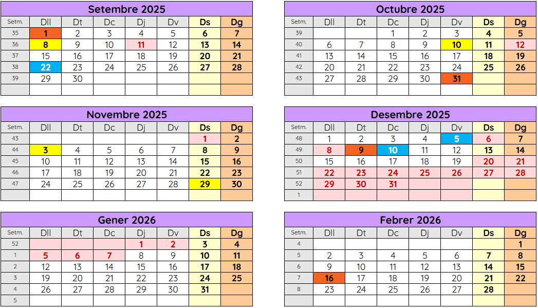 Calendari del curs