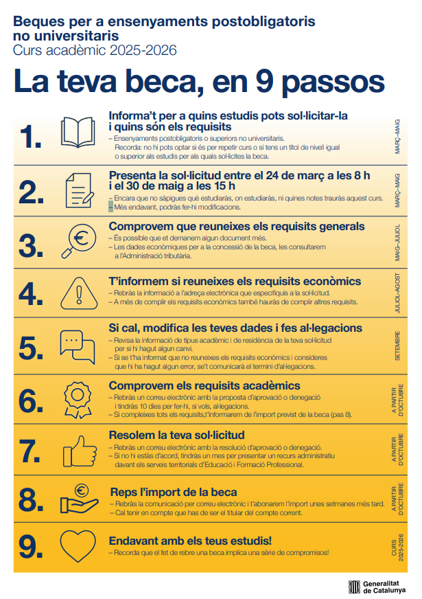 El termini per sol·licitar les beques s’ha ampliat fins al 11/09/2025 a les 15 hores.