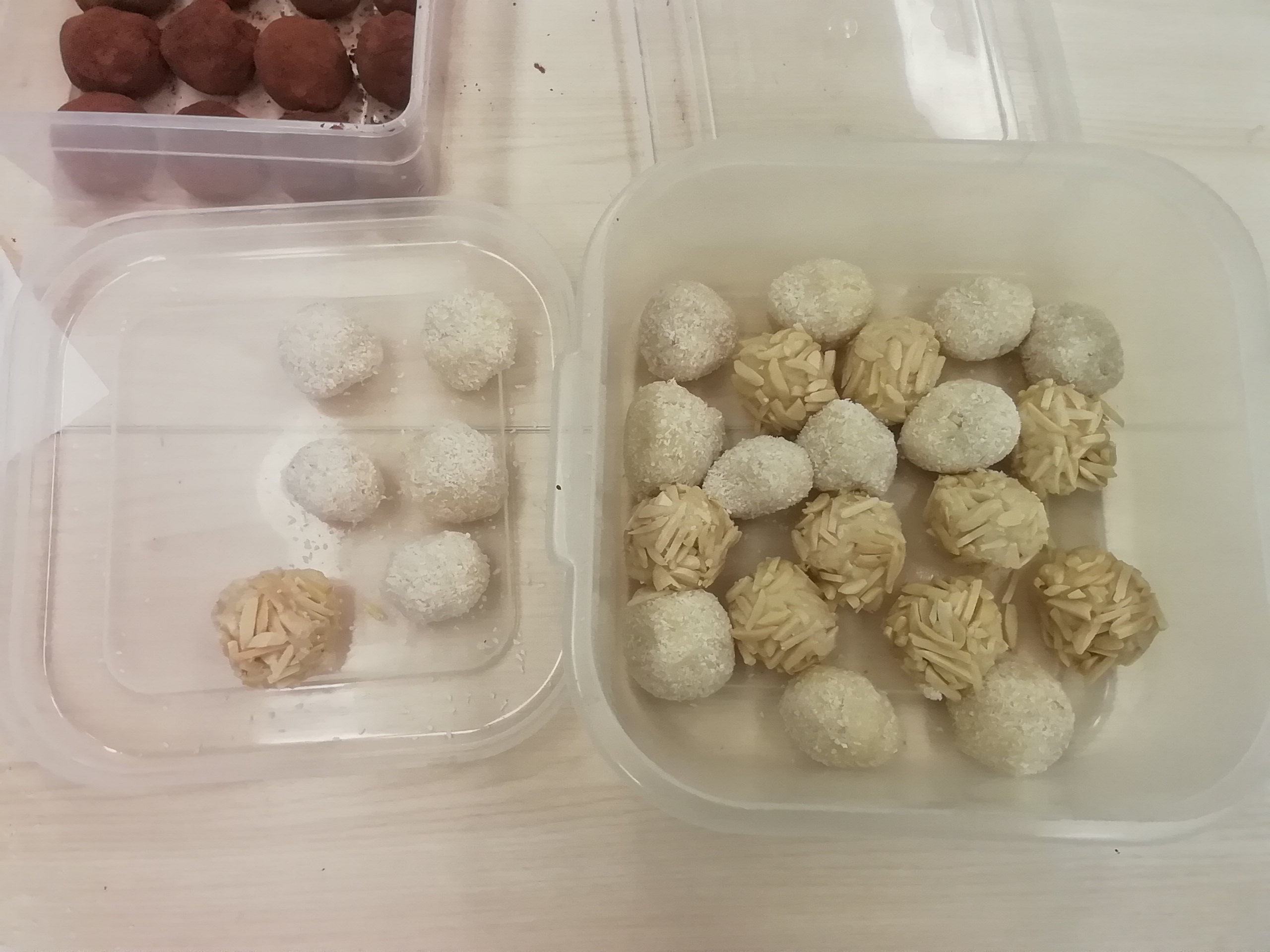 Després de la part teòrica, els alumnes van posar en pràctica els coneixements adquirits, manipulant els ingredients, formant les boles de masssa i decorant els panellets. Van gaudir de cada pas del procés, que els va permetre involucrar-se activament en la creació d’aquest element tan típic de la festivitat de la Castanyada, tot potenciant la seva creativitat i autonomia.