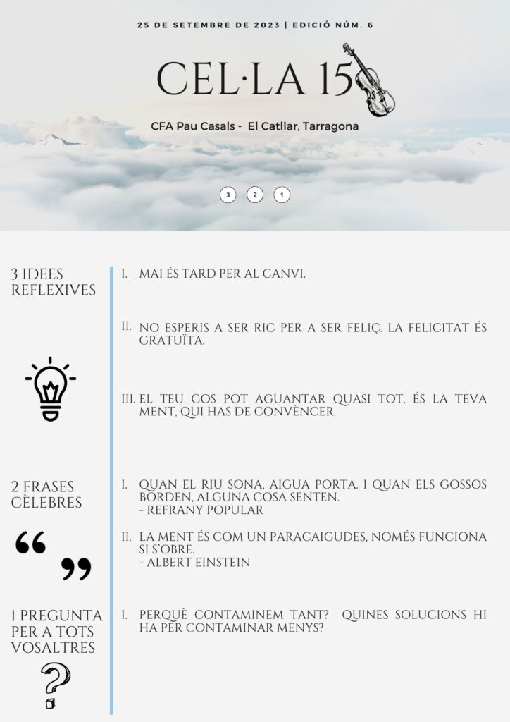 Aquí trobareu el butlletí “Cel·la 15”.  Un butlletí ocasional pensat per l’alumnat del CFA Pau Casals que conté: