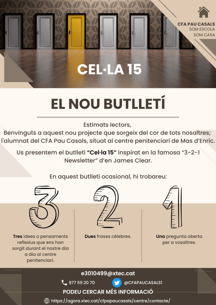 Us donem la benvinguda a aquest nou projecte que sorgeix del cor de tots nosaltres, els alumnes del CFA Pau Casals, situat al centre penitenciari de Mas d’Enric.
