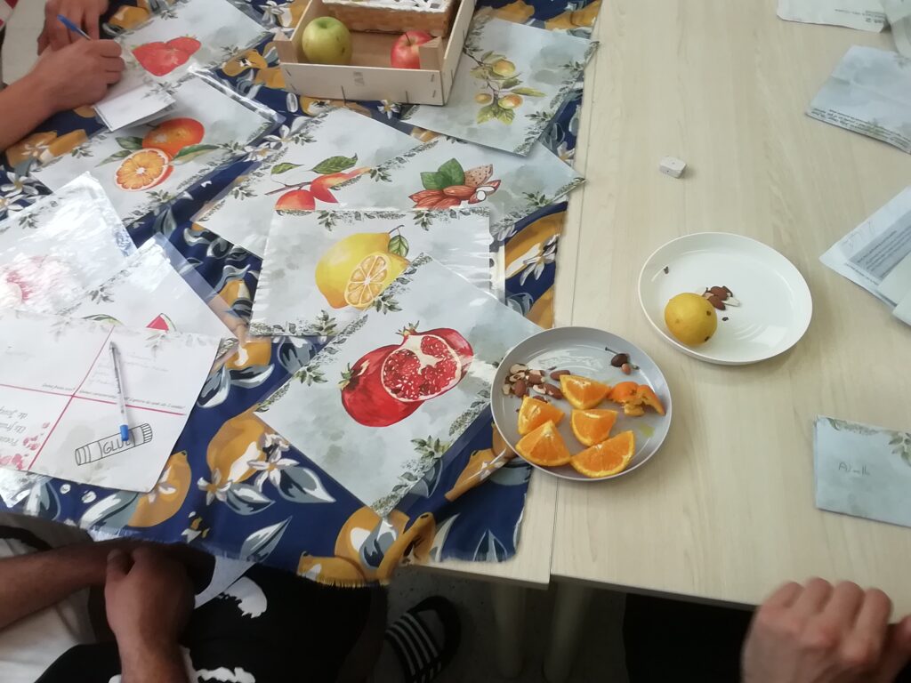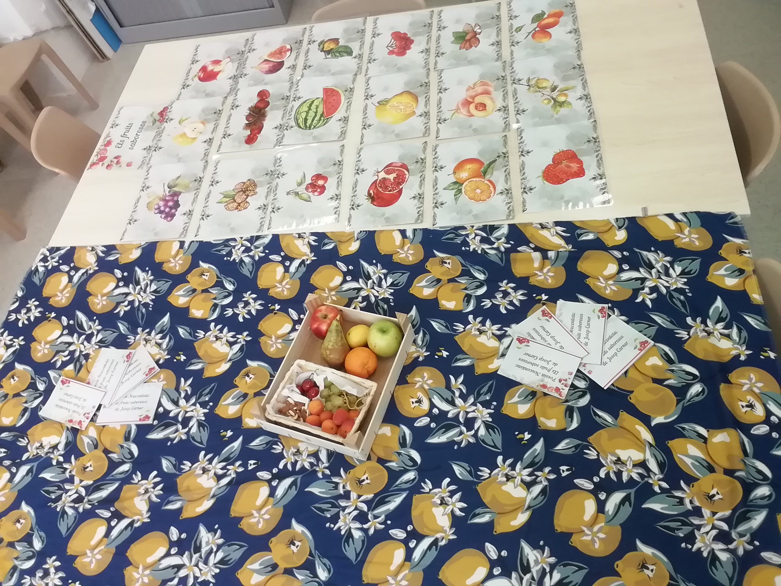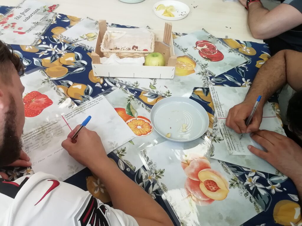 A través de l’observació i degustació de diverses fruites que sortien al poemari, vam analitzar quines qualitats tenien i vam debatre en quin moment vital les podíem associar (joventut – maduresa- vellesa).