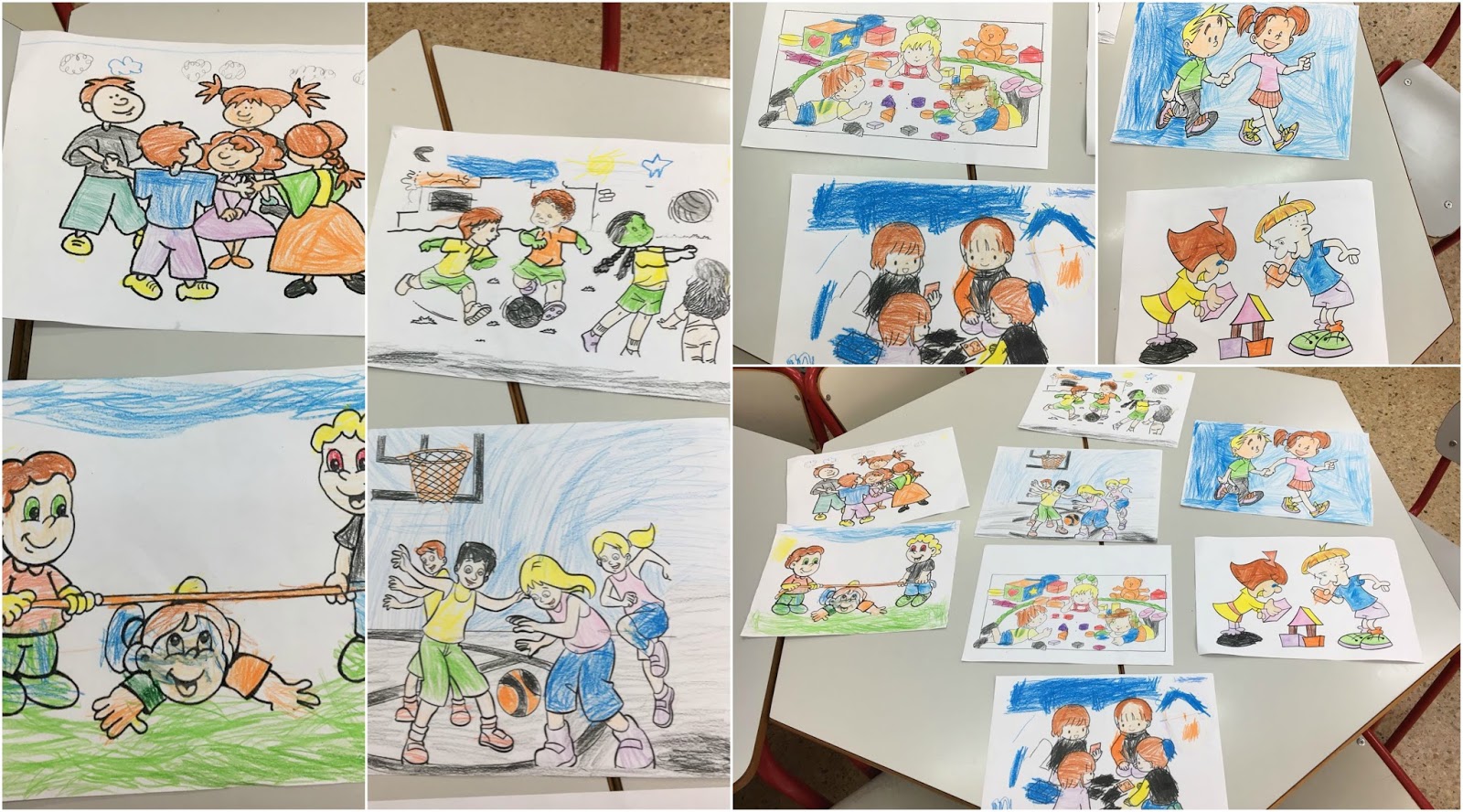 Un cop llegit el conte, i per grups de 3, han pintat uns dibuixos amb els quals han après que jugar tots junts sempre és més divertit!