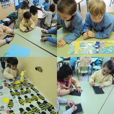 Treballen amb els punxons, fan puzzles i pinten abelles.