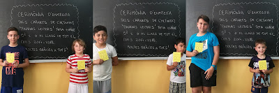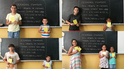 Carnets ‘padrins lectors’. Claustre de mestres22/06/18 Els nens i les nenes de 5è i 1r han estat compartint durant tot el curs l’activitat d’animació lectora, padrins lectors, i avui han fet la cerimònia d’entrega dels carnets als padrins i als fillols. Ha estat molt emocionant!