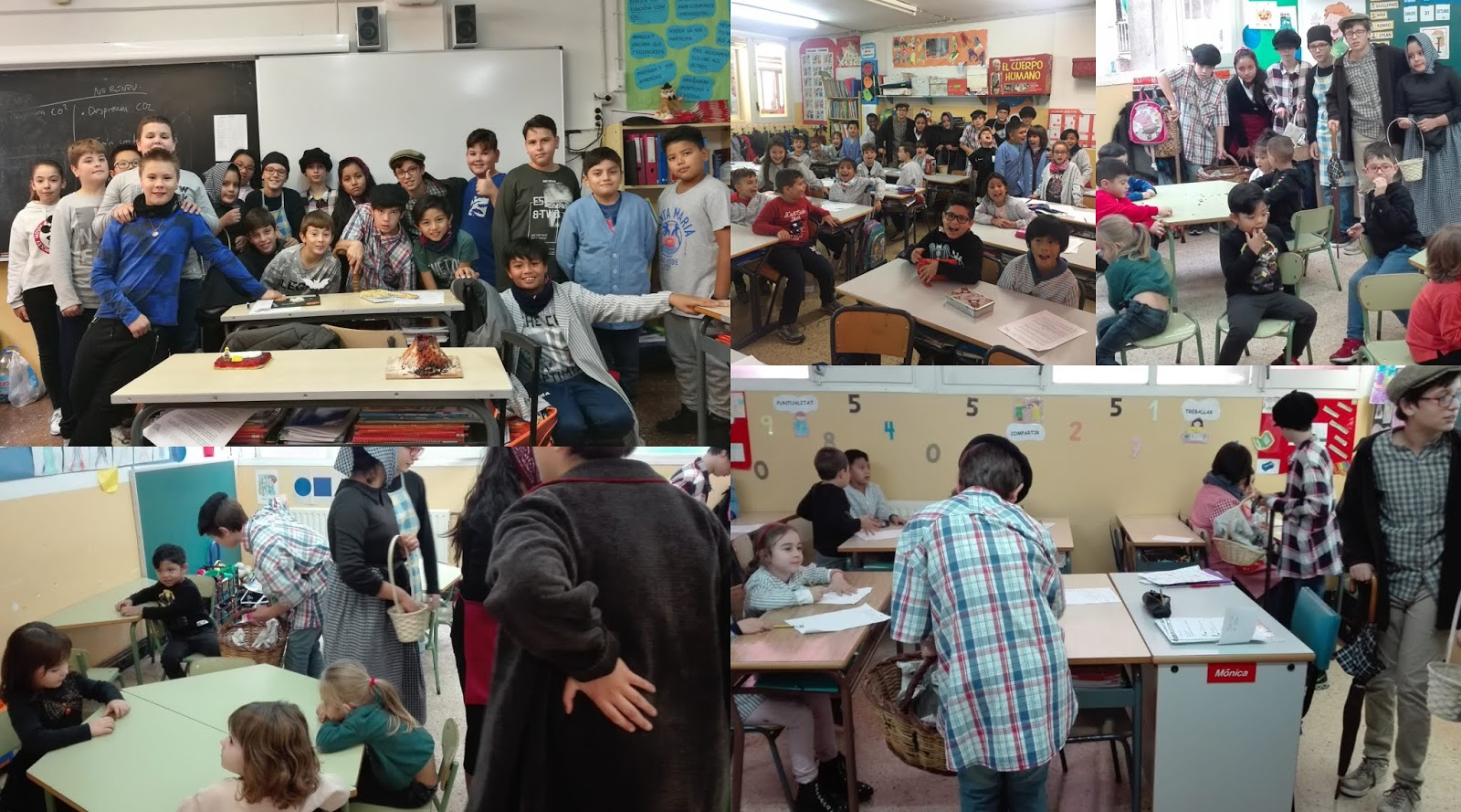 També hi ha hagut uns castanyers i castanyeres molt eixerits que s’han passejat per tota l’escola i han repartit castanyes. Tot i ser senyors i senyores grans, han pogut fer tota la feina sense problema! 😉