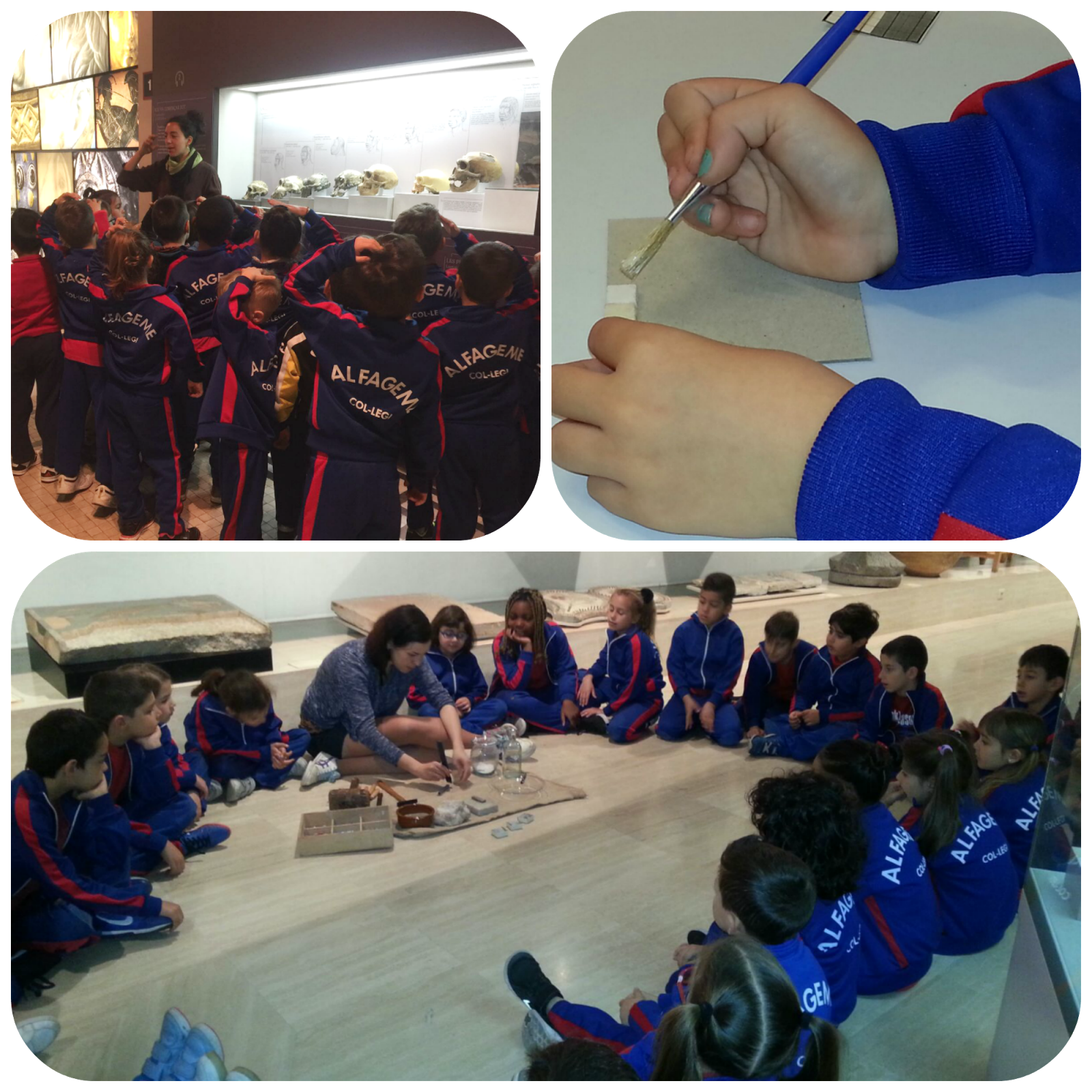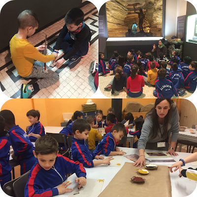 Els nens i nenes de 1r i 2n han anat al Museu d’Arqueologia. Els alumnes de 1r han aprofundit en l’evolució humana i el perÃode paleolÃtic mitjançant una visita a la col.lecció, amb un carro didà ctic, i un taller d’experimentació a l’aula taller per aprendre tècniques per encendre el foc i experimentar amb la pintura rupestre. Els alumnes de 2n han analitzat els diferents mosaics originals exposats al Museu, han explicat els motius decoratius i les tècniques i després s’han posat a practicar i a fer el seu mosaic romà . Han après molt i s’ho han passat d’allò més bé.