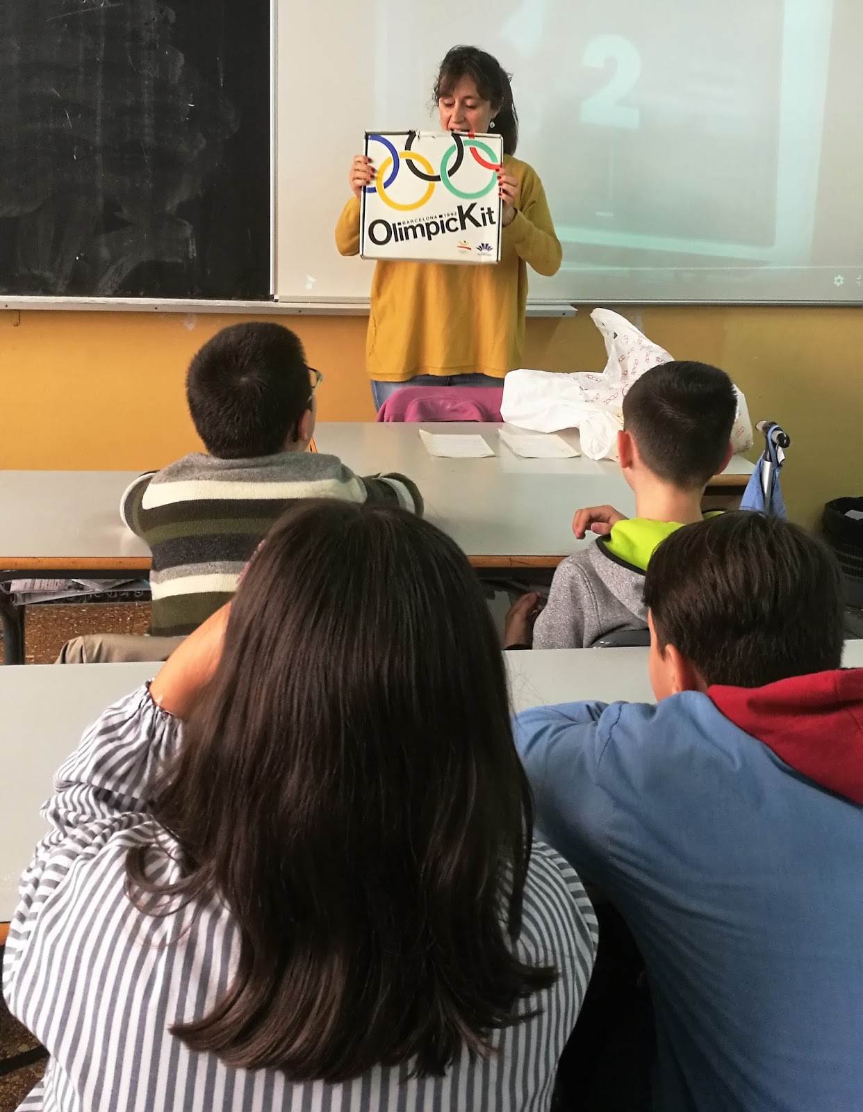 Els nens i nenes de 5è han rebut una visita molt olímpica! La mare del Pol, l’Eva, va participar en la cerimònia d’inauguració dels Jocs Olímpics de Barcelona ’92 i conserva molts records d’aquells dies. Tant és així que, fins i tot, recorda el moment en què va saber que Barcelona havia estat escollida com a seu olímpica. Ella feia 6è a la nostra escola i a l’hora de dinar es van assabentar de la notícia. Per recordar aquell moment tan emocionant, ha posat el video en el qual Joan Antoni Samaranch anunciava la ciutat escollida. Ha explicat que a Barcelona hi va haver 60.000 voluntaris. La condició per ser-ho era l’edat, havien de tenir fets els 18 al 1992 per poder participar. Segons això, l’Eva no hauria pogut però, posteriorment, es van demanar 2.000 voluntaris més per a la cerimònia d’inauguració i aquí sí que reunia els requisits. Necessitaven ballarins i ballarines. A l’acadèmia on l’Eva feia classes de ball van rebre una carta sol.licitant participants. Quatre noies van fer el càsting i tres van ser sel.leccionades, l’Eva entre elles. Assajaven els dissabtes al Parc de l’Espanya Industrial. Elles van fer d’ocells que donaven la benvinguda a tothom. El famós HOLA. Serien els primers a participar en l’acte inaugural. Quan assajaven hi havia molta gent, molts famosos, els coreògrafs eren un home i una dona de Las Vegas! Estaven envoltats de premsa sempre i a tot arreu.