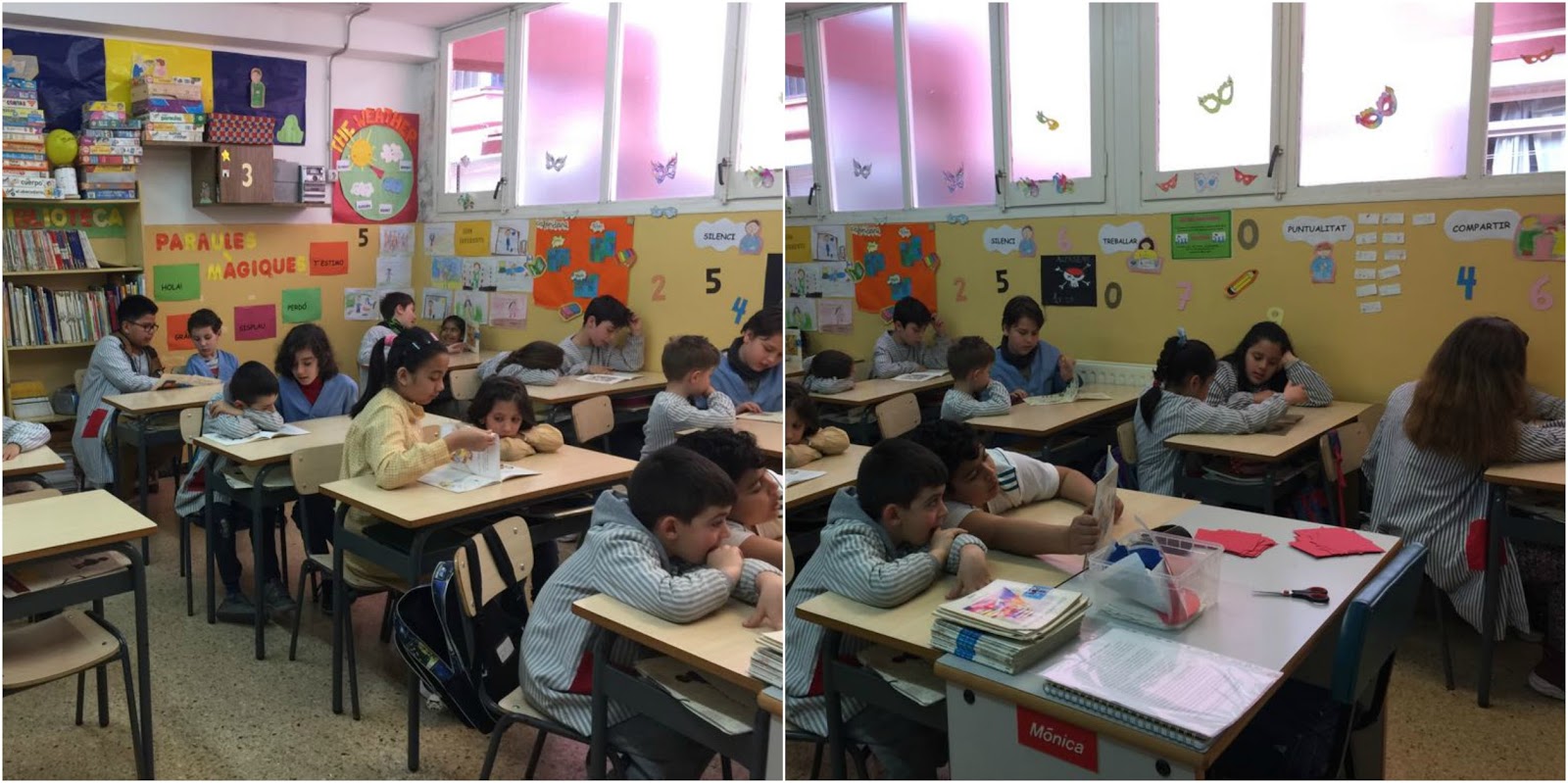 A vegades, és el nen o la nena de 1r qui llegeix el llibre al seu padrí o padrina i, altres vegades, són els padrins i padrines els que llegeixen als seus fillols i filloles.