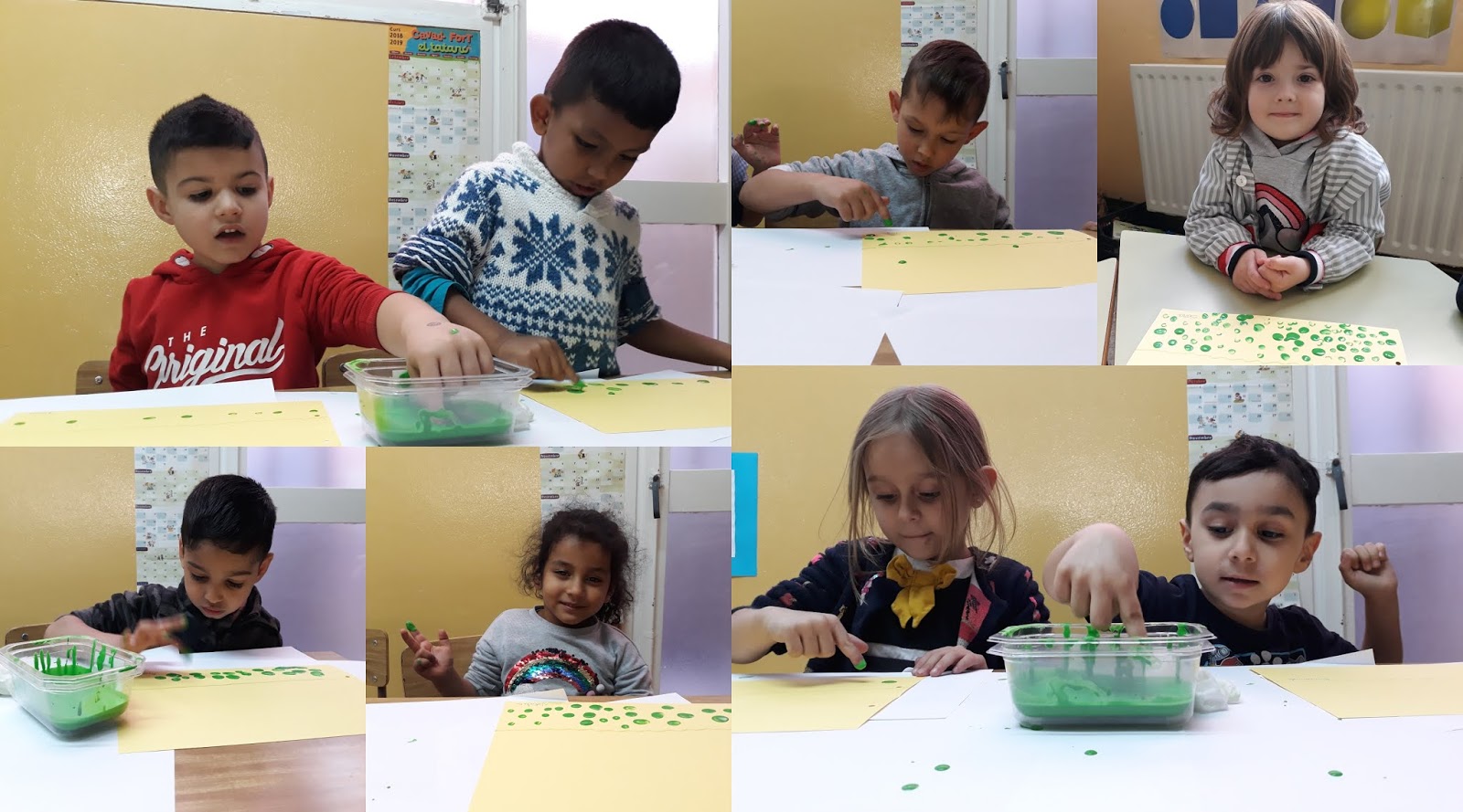 I una altra cosa que els encanta fer és pintar. En aquesta ocasió, estan fent gespa amb pintura de color verd i els seus ditets.