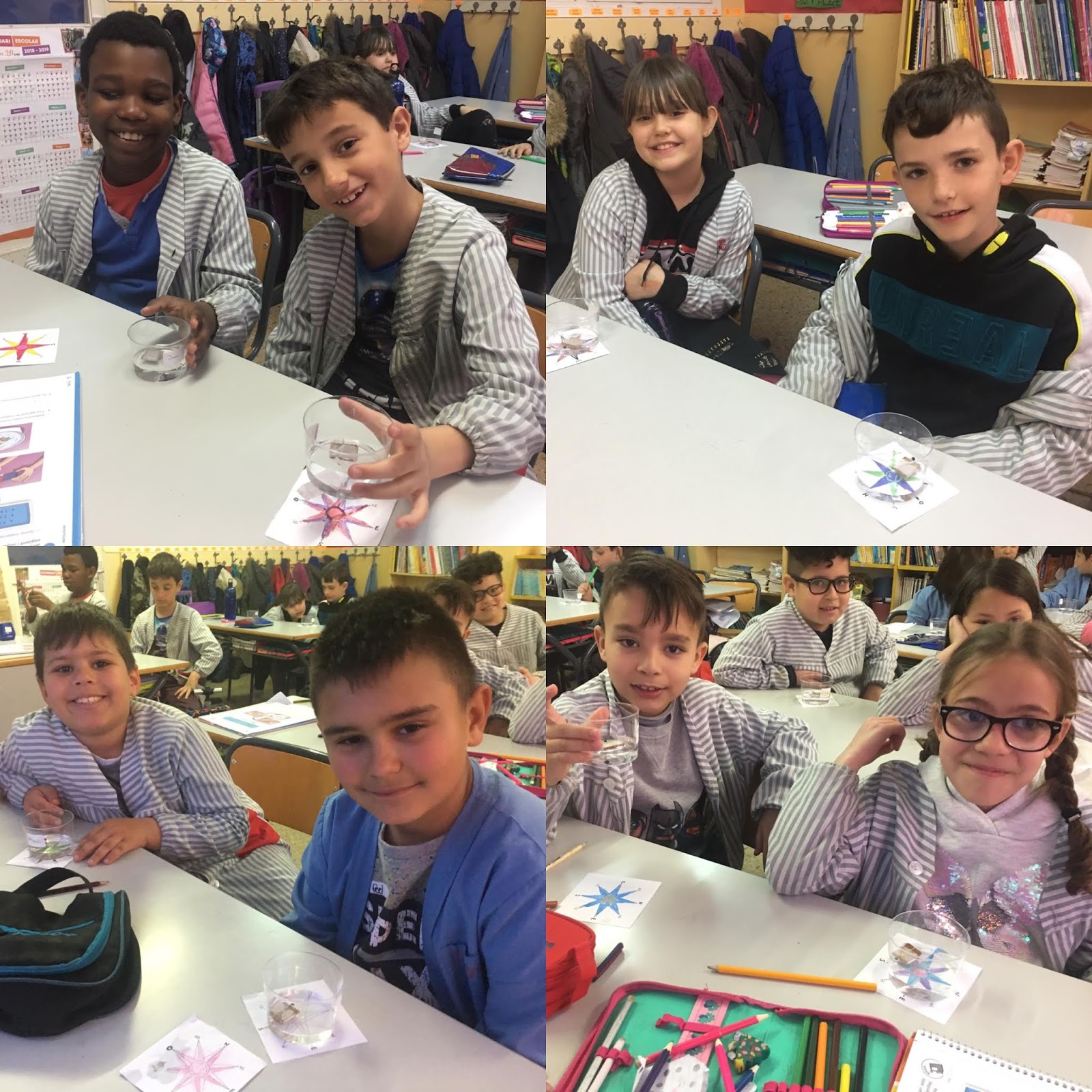A 3r, a la classe de Socials, segueixen fent la cerca del tresor i, per això, han construït una brúixola per poder-se orientar.