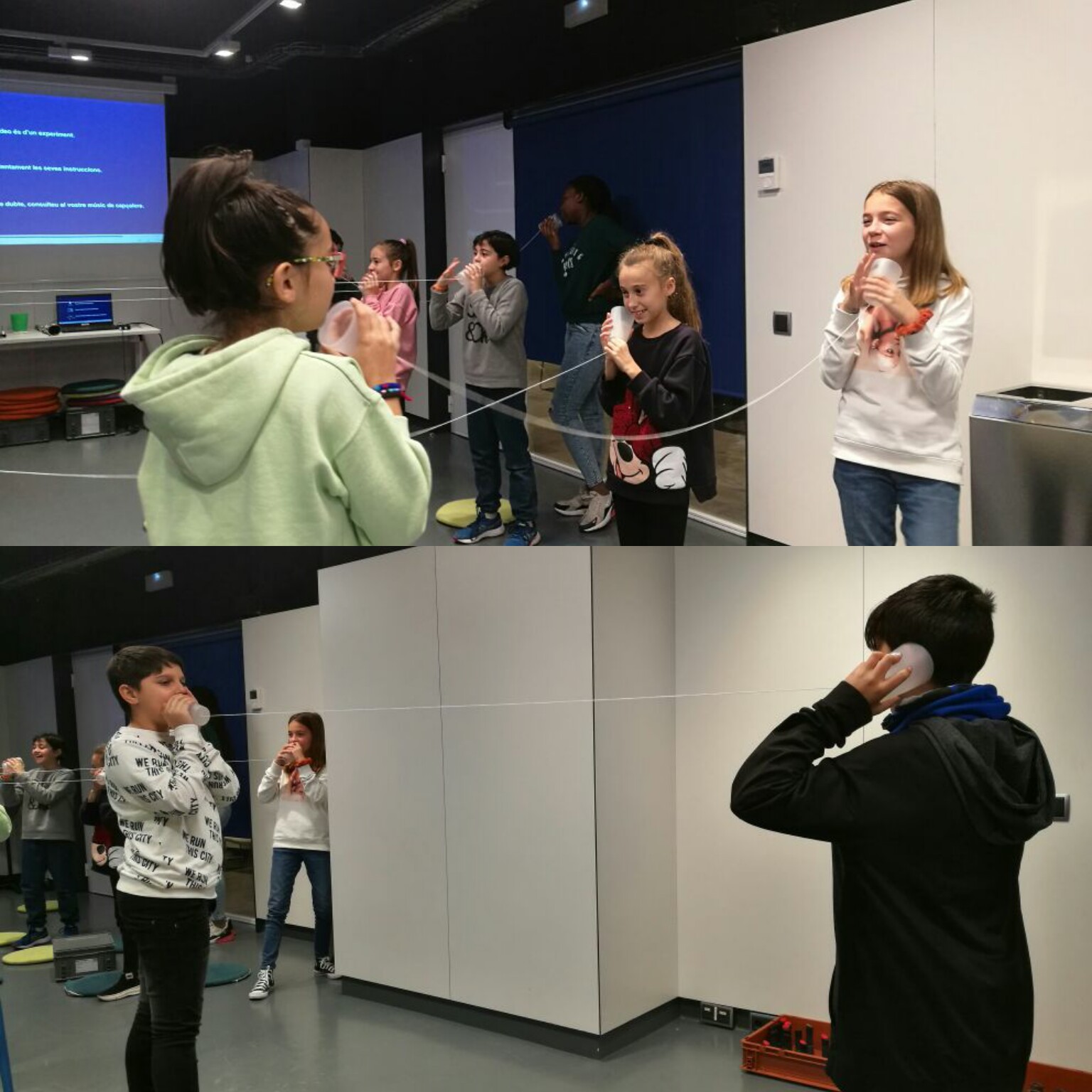 Per parelles, han fet l’experiment del telèfon i el fil per comprovar com es transmet el so.