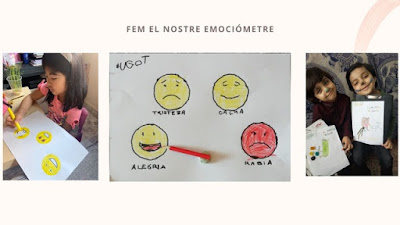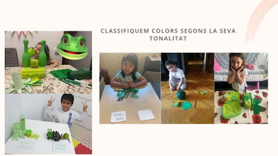 A la classe de les granotes,durant aquesta setmana, han treballat molt : han mirat el temps i han fet la data cada dia, han classificat colors segons la seva tonalitat i fins i tot han fet el seu propi emociómetre per treballar les emocions a casa.