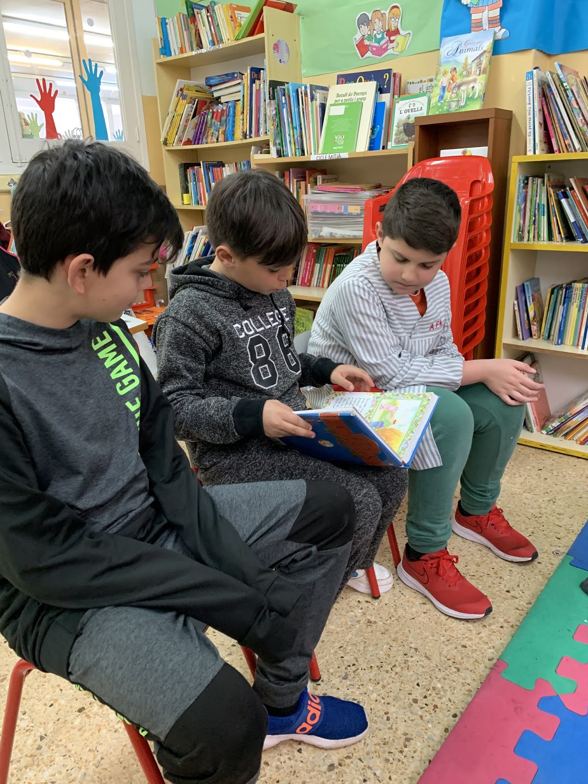 Avui tres alumnes de 5è han vingut a explicar el conte “ Els tres porquets” als nens i nenes de 2n.