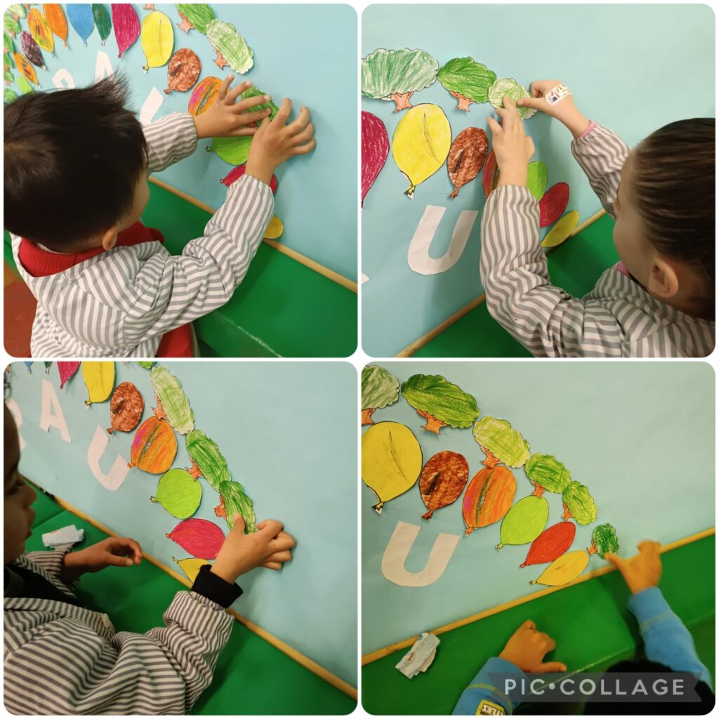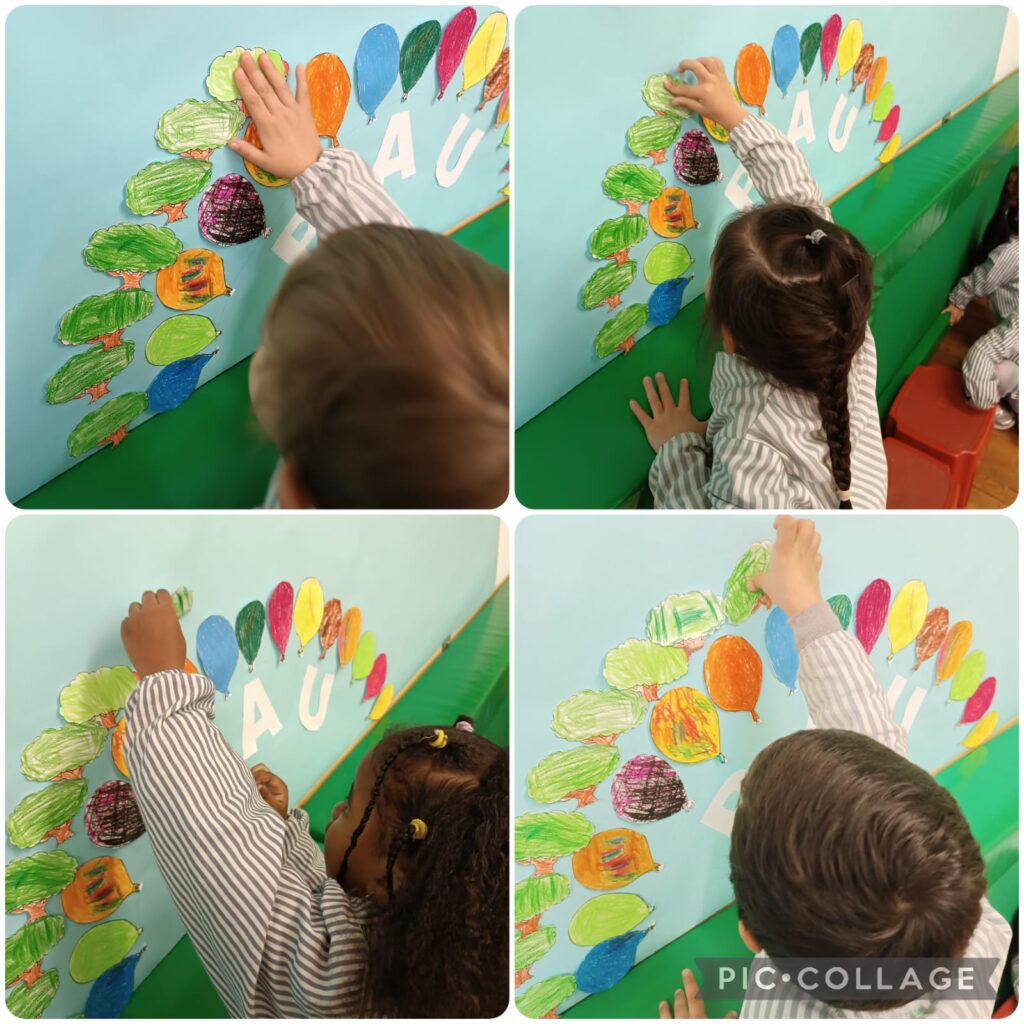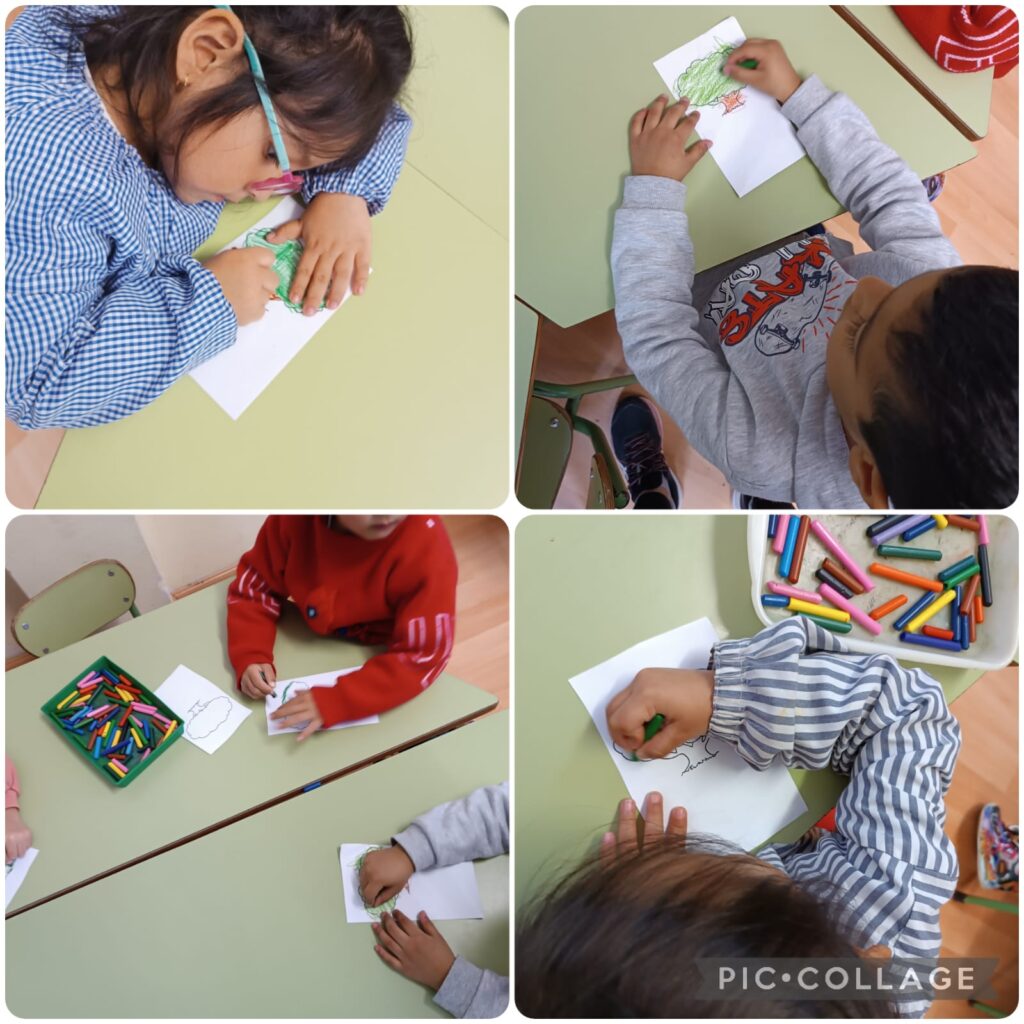 Els infants de la classe de les girafes, han dibuixat arbres per, posteriorment, decorar el mural de la Pau que hem realitzat entre tot l’alumnat de l’escola.
