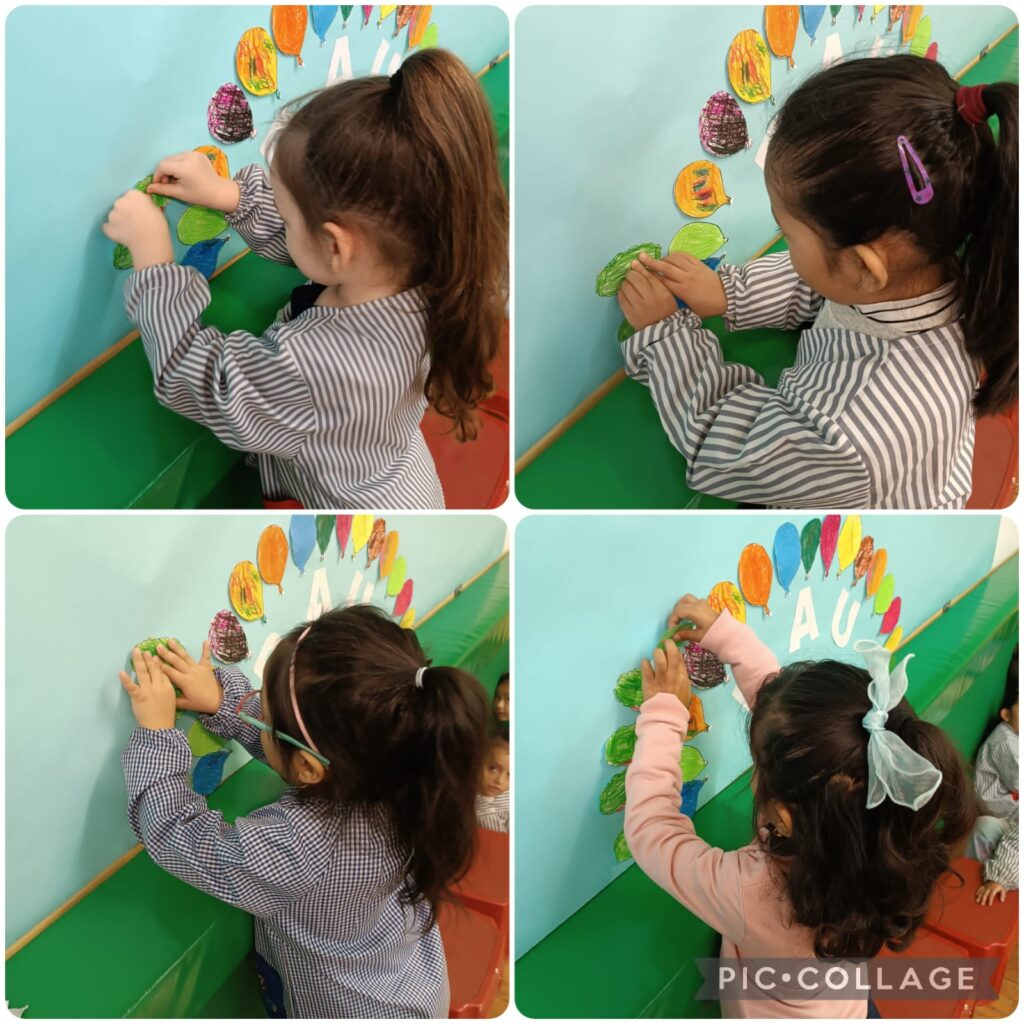 Després de fer aquesta activitat tan maca entre tota l’escola, la classe d’I4 també han decorat un colom amb boletes de cotó.
