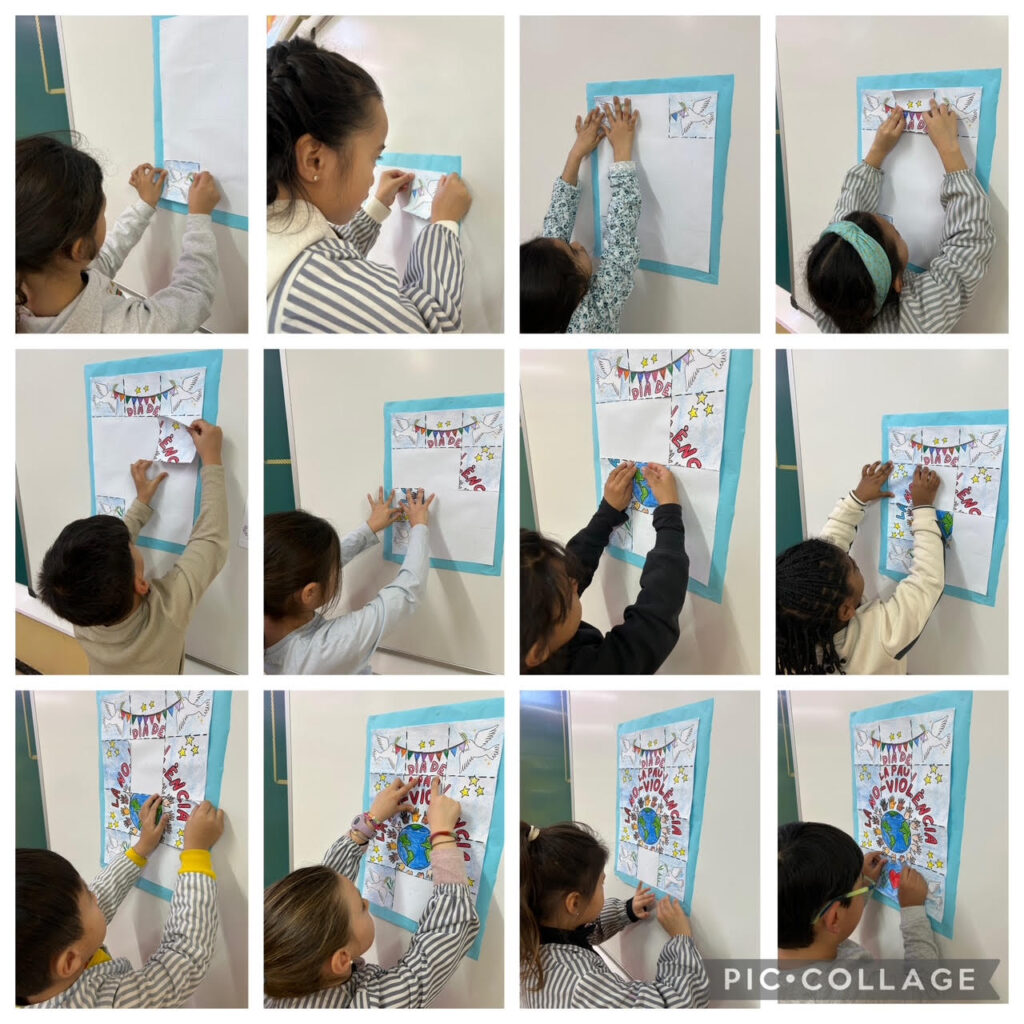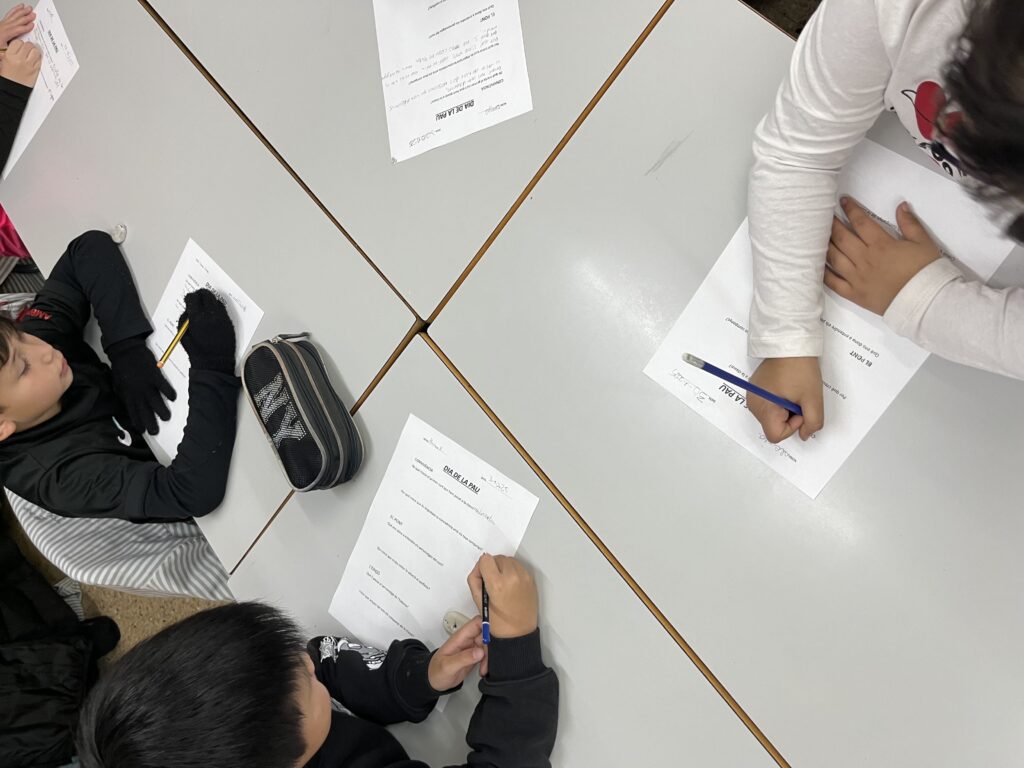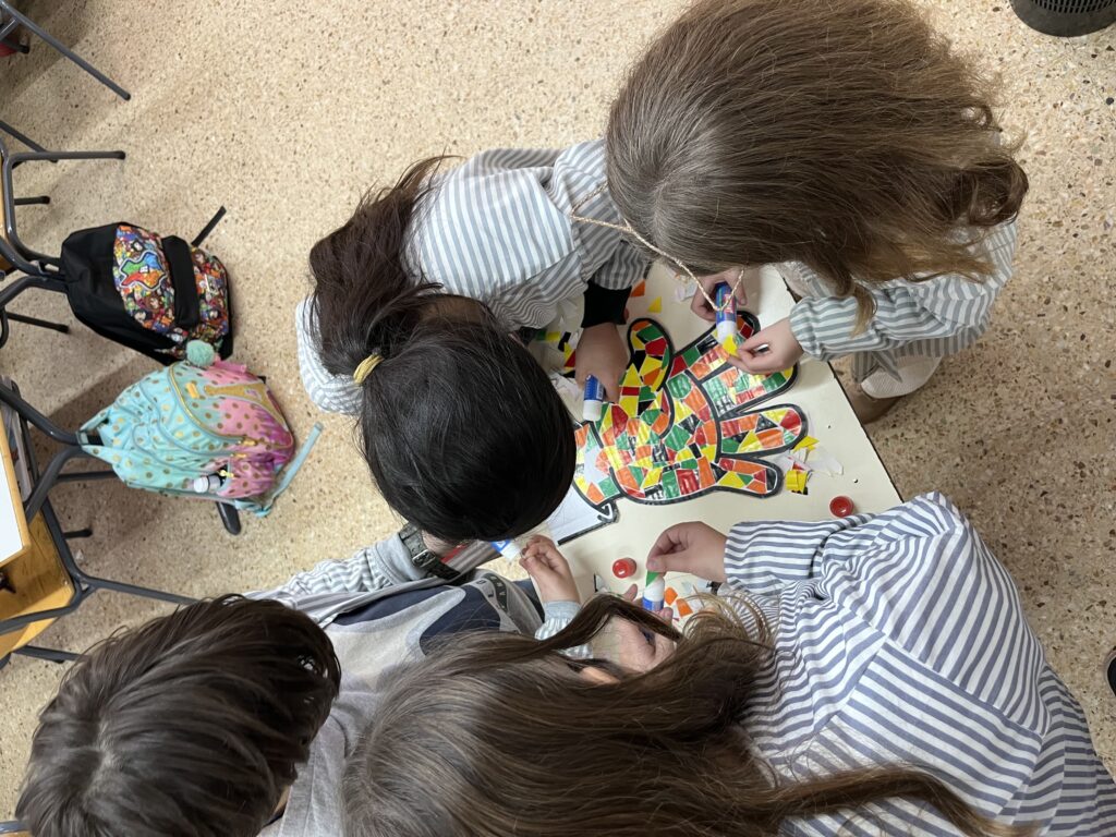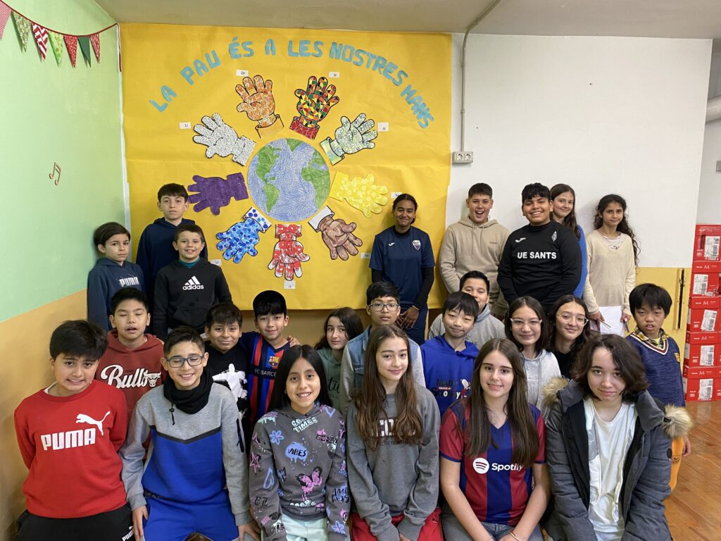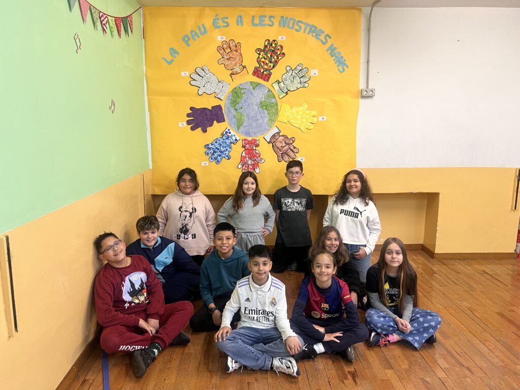 També han vist el vídeo ‘El puente’ per reflexionar sobre quina és la millor manera per intentar resoldre els conflictes i han participat en el mural confeccionat per tota l’escola completant un dibuix d’una mà amb el símbol de la Pau.