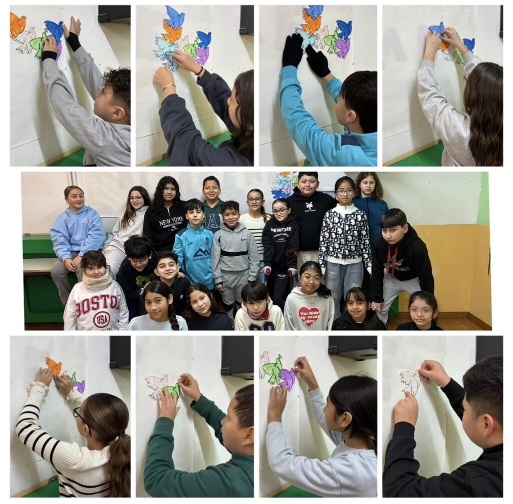 Per un costat, hem fet amb la resta de companys de l’escola, un mural conmemoratiu del dia de la pau, i per un atre costat, hem treballat una activitat sobre com guanyar en asertivitat i empatia amb els companys, relacionant les dues premises amb com aconseguir un món més just i habitable.
