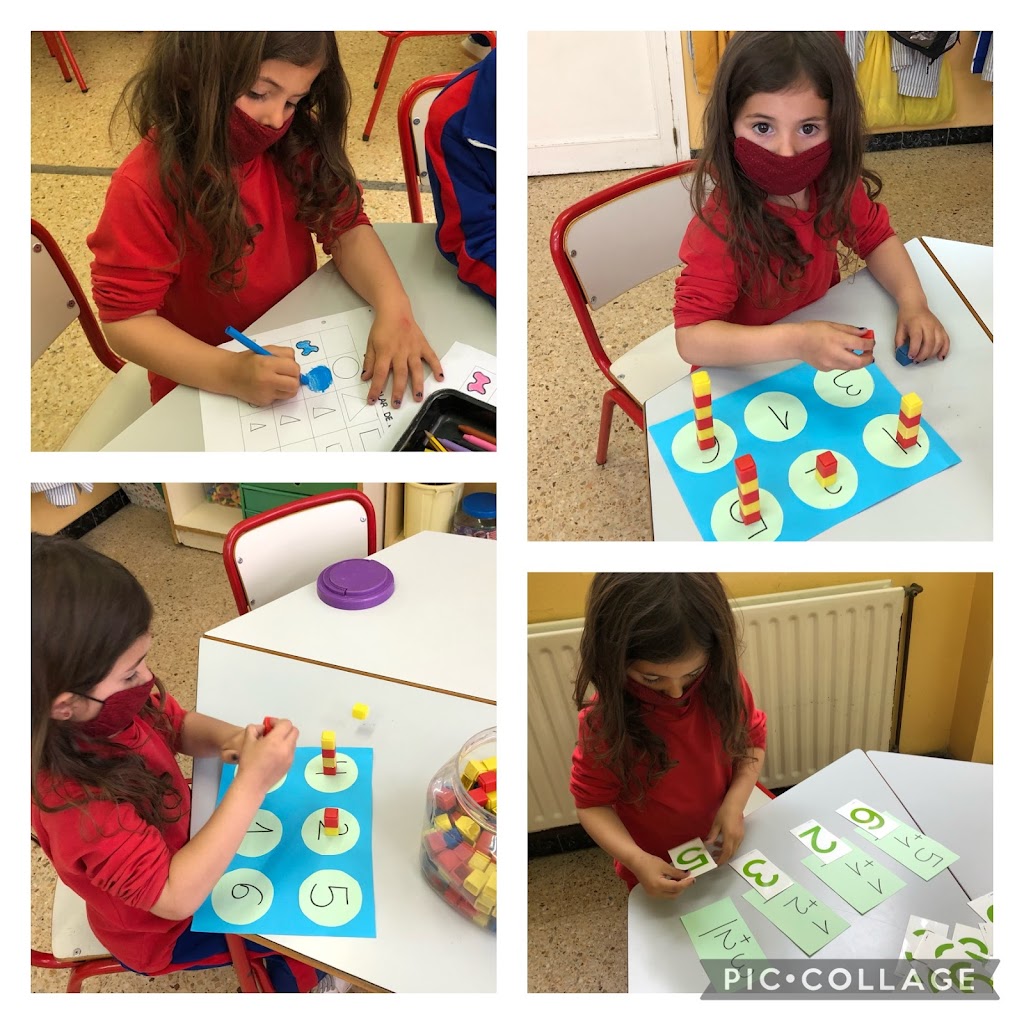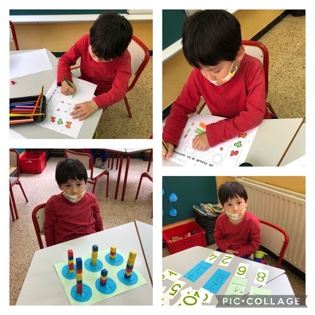 Els nens i les nenes de la classe dels Elefants han celebrat aquest dia fent un munt d´activitats i tallers, però realment, de matemàtiques en fem cada dia del curs i en moltes de les nostres rutines diàries, per exemple, quan diem el dia de la setmana i el lloc que ocupa, quan comptem quants nens i nenes som a la classe, quan ens posem en ordre a la fila per anar al pati, etc. En aquest cas, hem dedicat el dia a fer una fitxa sobre una taula de doble entrada, un joc de sumes i restes i un joc de relacionar quantitat-grafia.