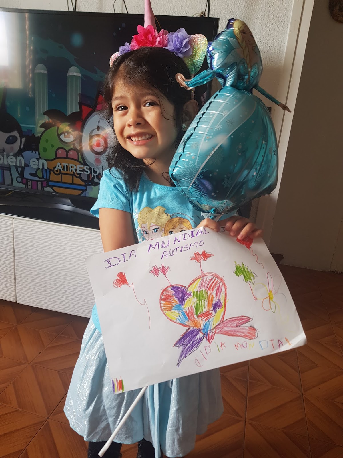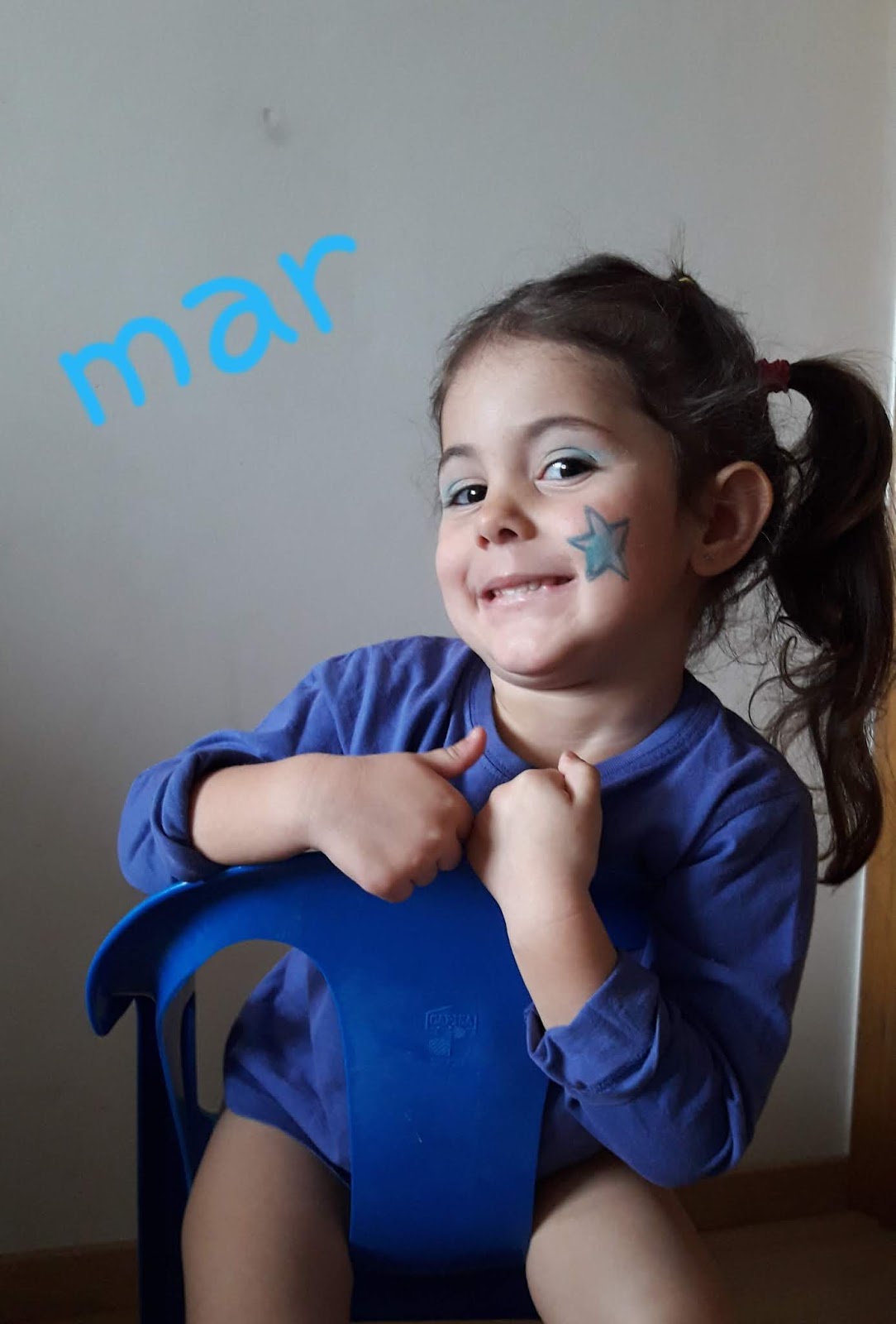 amb una samarreta blava, amb unes ulleres blaves, amb un barret blau, amb una pulsera blava, amb un mocador blau, amb una diadema blava…o amb altres complements que tinguin o es puguin fer d’aquest color.