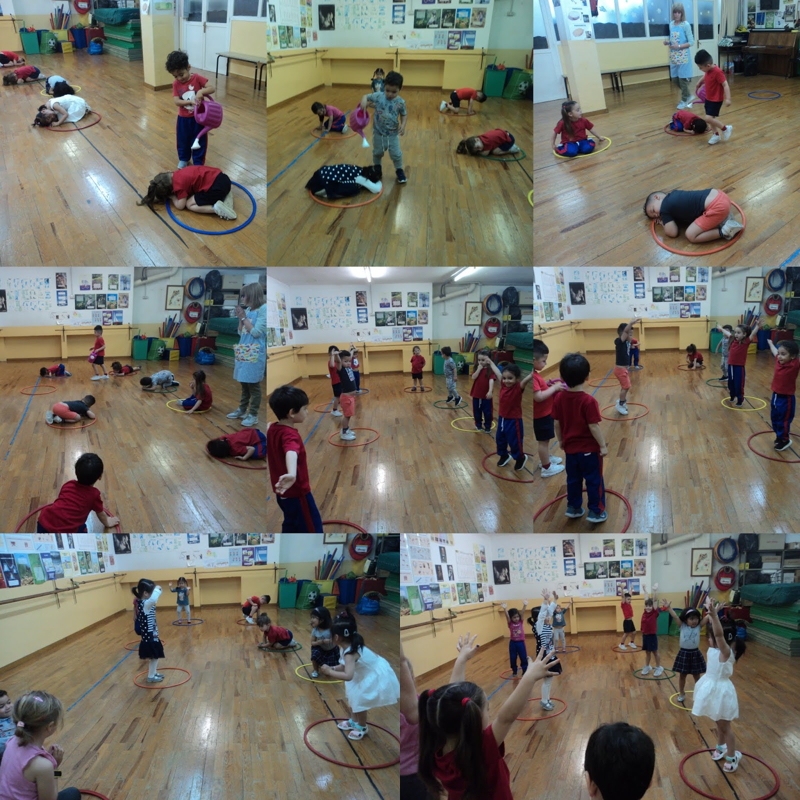 A l’aula de psicomotricitat, els nens i les nenes d’EI3 han fet de llavors dins d’un cercle que representa un test. Un company o una companya els ha regat i, de mica en mica, han anat creixent…