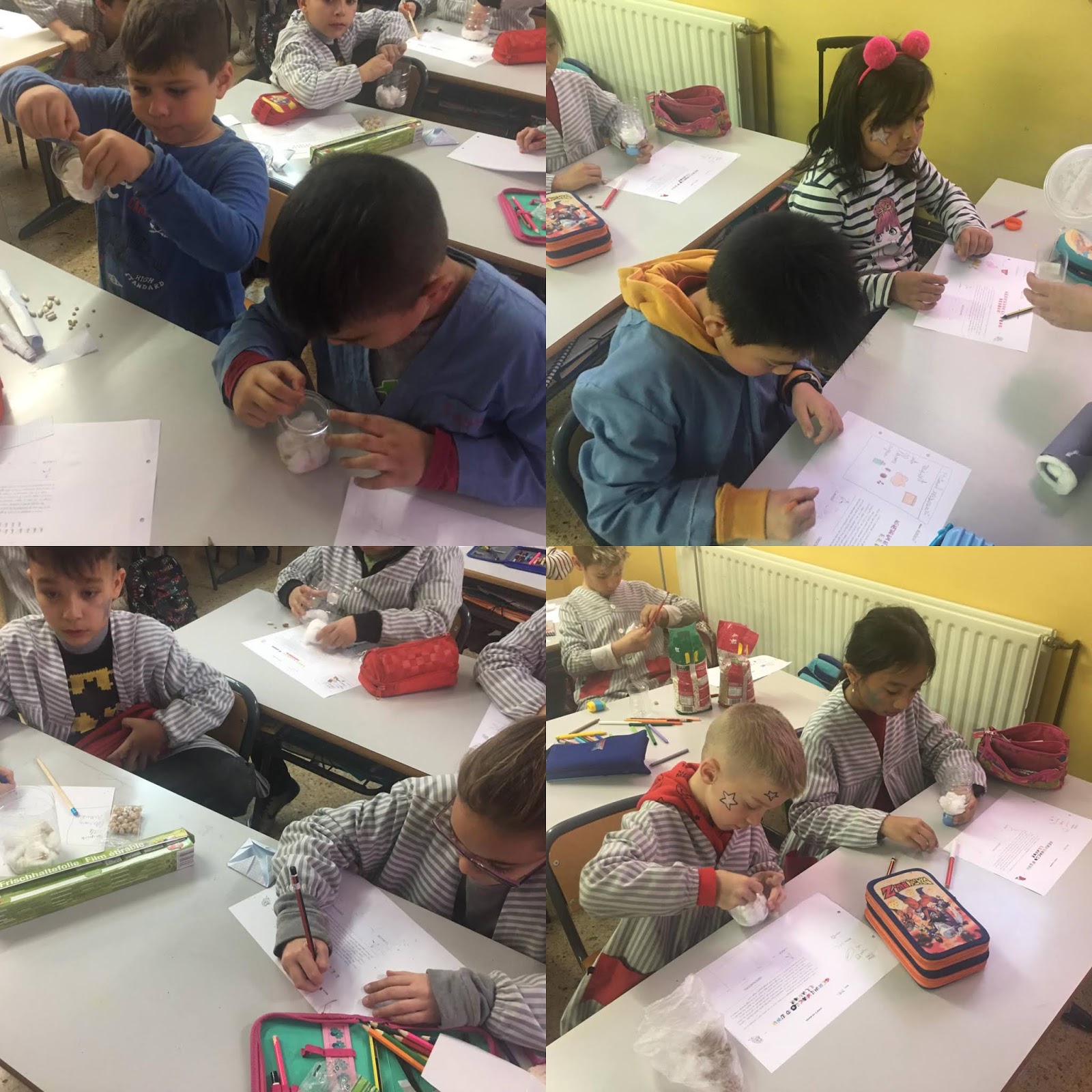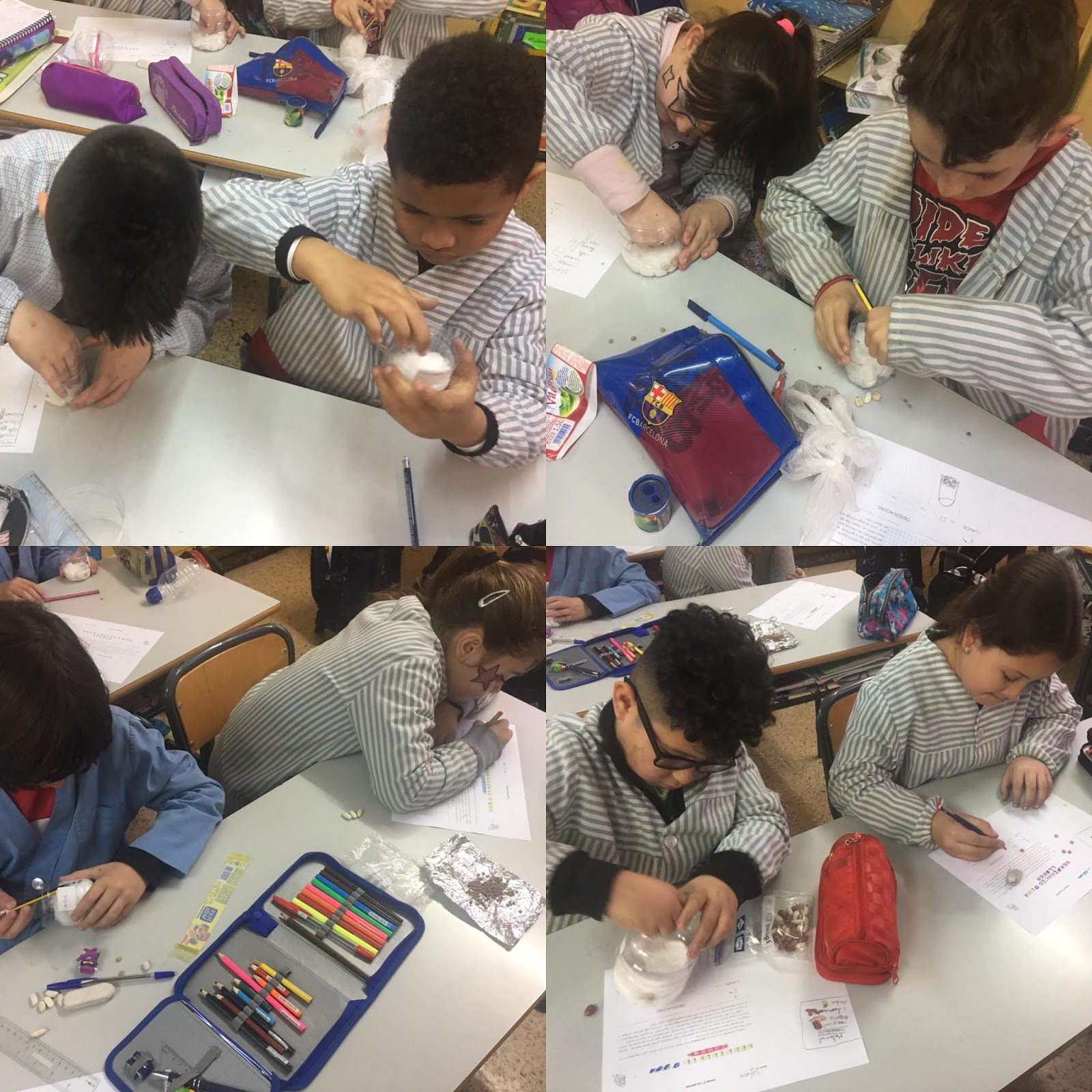 Per fer-ho, han utilitzat un recipient transparent i cotó fluix per poder anar observant el creixement de les plantes.
