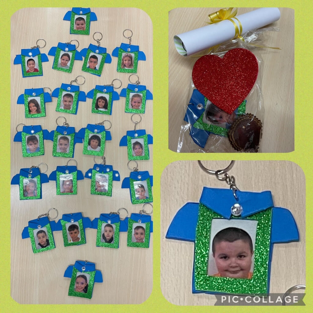 Ens han sorprès amb l’elaboració d’un clauer amb forma de camisa i personalitzat amb una foto de tots els nens i nenes. Després han pogut fer una dedicatòria al darrera i també han completat un diploma on se’ls hi diu als pares que són els millors del món.
