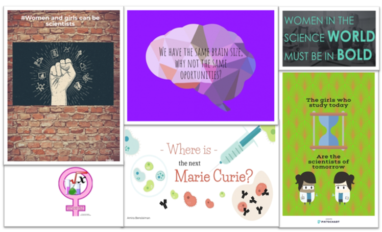 Finalment hem dissenyat uns pòsters propagandístics per una campanya per la igualtat de gènere a la ciència. Aquí teniu una petita mostra.