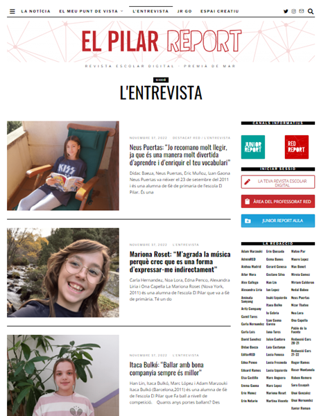 Un curs més hem posat en marxa la nostra revista digital, El Pilar Report. Els alumnes de 6è i 3r d’ESO hi han publicat notícies i entrevistes sobre la nostra escola i també sobre els talents ocults de companys i companyes. Aviat hi trobareu articles d’opinió i un monogràfic sobre Golfus de Roma. No us ho perdeu!