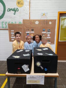 Els alumnes de primer i segon de primària hem après sobre la llum a través de l’experimentació: hem observat com es fan les ombres, com canvien segons la posició dels objectes i de la llum, i hem classificat materials opacs, translúcids i transparents.