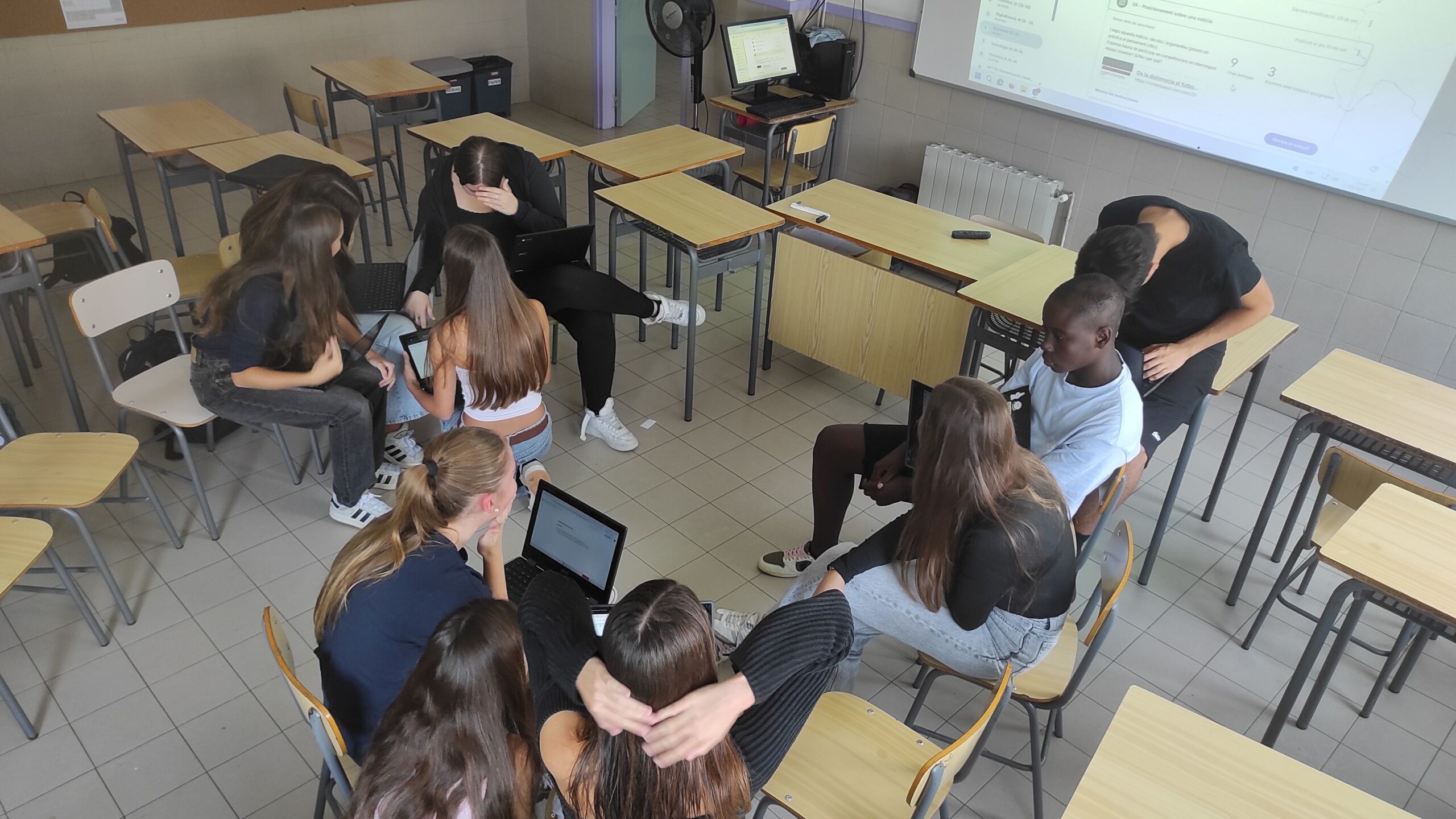 Després d’una reflexió individual sobre la pregunta “Espanya hauria de participar en competicions on intervinguin equips israelins?”, els alumnes han protagonitzat un debat obert i respectuós, on han defensat les seves opinions amb arguments raonats.