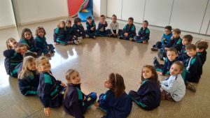 Tots els tortells eren rodons amb un forat al mig i així l’hem representat a la classe entre tots, una gran rotllana sense ningú al mig.