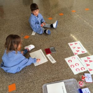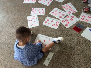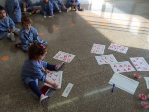 I l’altre grup feia una activitat per reconèixer la primera lletra del seu nom. Un cop tenien la lletra l’estampaven amb tinta en un full.