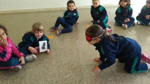 Alguns nens/es no volien tapar-se els ulls però tots hem jugat i ens ho hem passat molt bé o reproduïnt el so dels animals o intentant identificar d’on venia el soroll que feien els nostres amics.