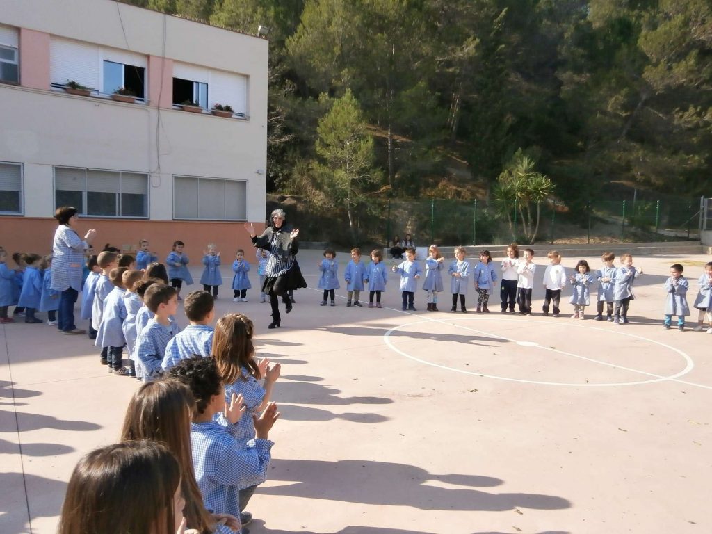 Els alumnes d’Educació Infantil i Cicle Inicial de primària, van rebre la visita de la Castanyera al pati de l’escola i van cantar, ballar i menjar castanyes.