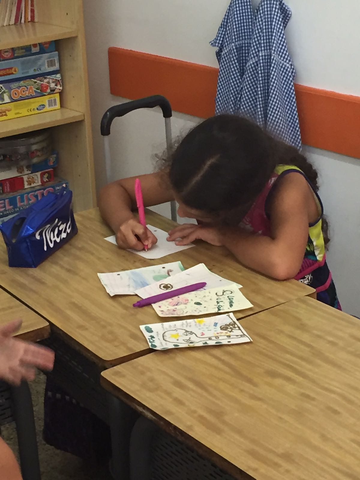 Els alumnes de 2n de primària han estat escrivint contes a l’assignatura de Català. A l’aula tenen diversos racons i materials com “La fàbrica dels contes” i ” Les cartes de l’amistat”, per tal de poder deixar volar l’imaginació i crear les seves pròpies aventures.