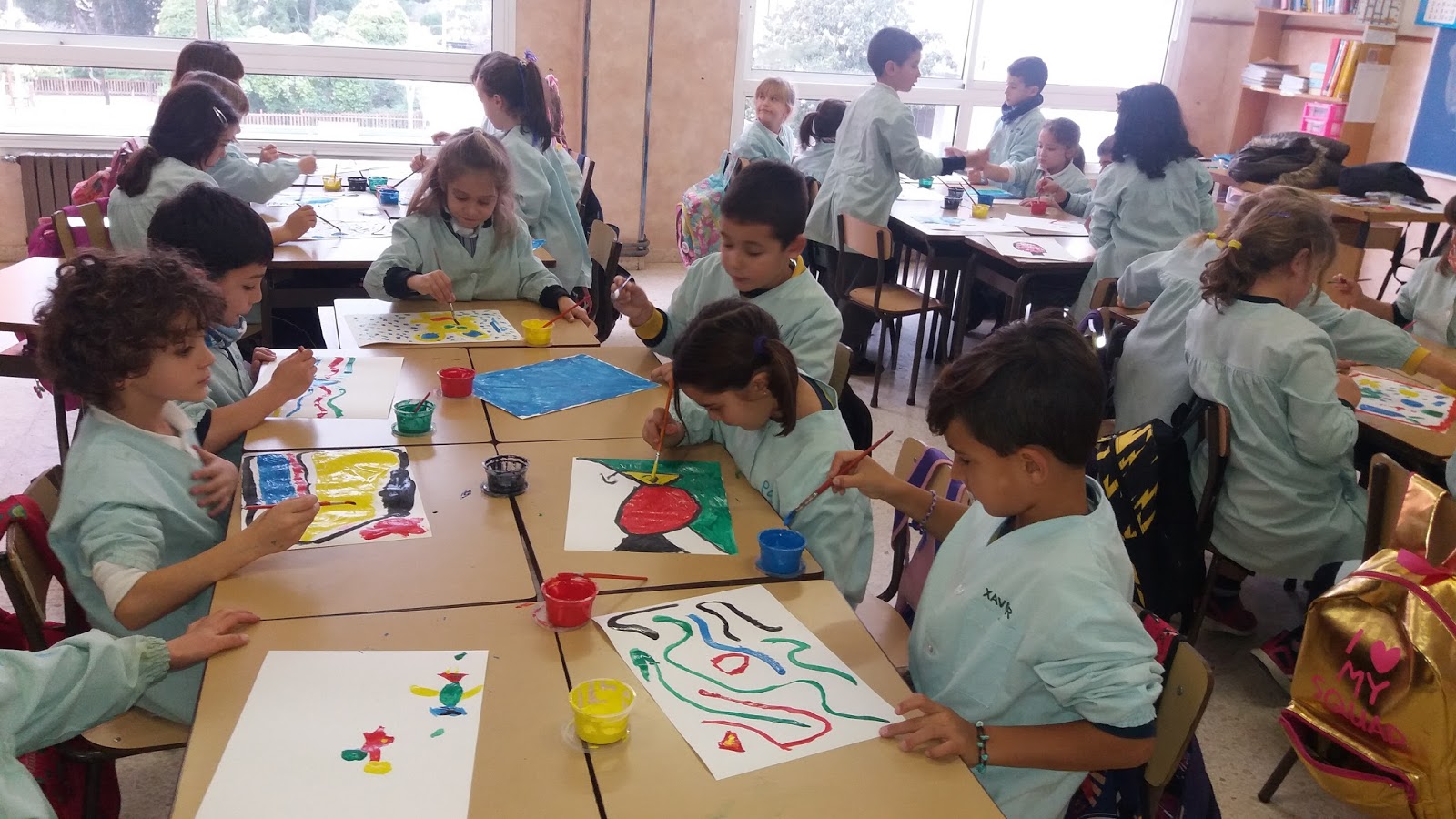 Ara ja en sabem moltíssimes coses i algunes de les seves obres. Com ja sabeu, els divendres fem els tallers de plàstica amb companys de 1r i 2n de cicle inicial, i a l’aula de pintura ens hem convertit amb autèntics Joan Miró. Mireu quines obres més fantàstiques que hem fet!