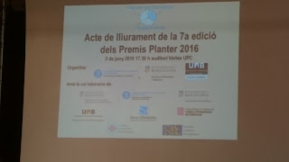 El passat 3 juny a l’auditori Vèrtex de la Universitat Politècnica de Catalunya (UPC) es va celebrar l’acte de lliurament de la 7a edició dels premis Planter de Sondeigs i Experiments 2016. El alumnes de 1r de Batxillerat, Òscar Maixenchs, Blanca Sánchez i Arnau Soto, acompanyats pel professor Jordi Gibert i del seu tutor Ferran González, van assistir en representació de la nostra escola. El treball presentat és “Incideix l’ús del mòbil en el rendiment escolar?” i va ser realitzat pels tres alumnes assistents més en Marc Riera i en David Falhe, des de l’àrea de Matemàtiques aplicades a les ciències socials. Va ser un dels 144 treballs presentats i un dels dos que representaven a tota la província de Girona. Felicitats per la feina feta!!