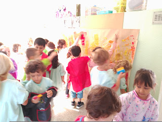 Ens ho hem passat d’allò més bé perquè aquesta vegada hem pogut pintar amb les mans, amb taps amb boles i pinces, amb pinzells especials que fan formes diferents,… i aquest ha sigut el resultat.