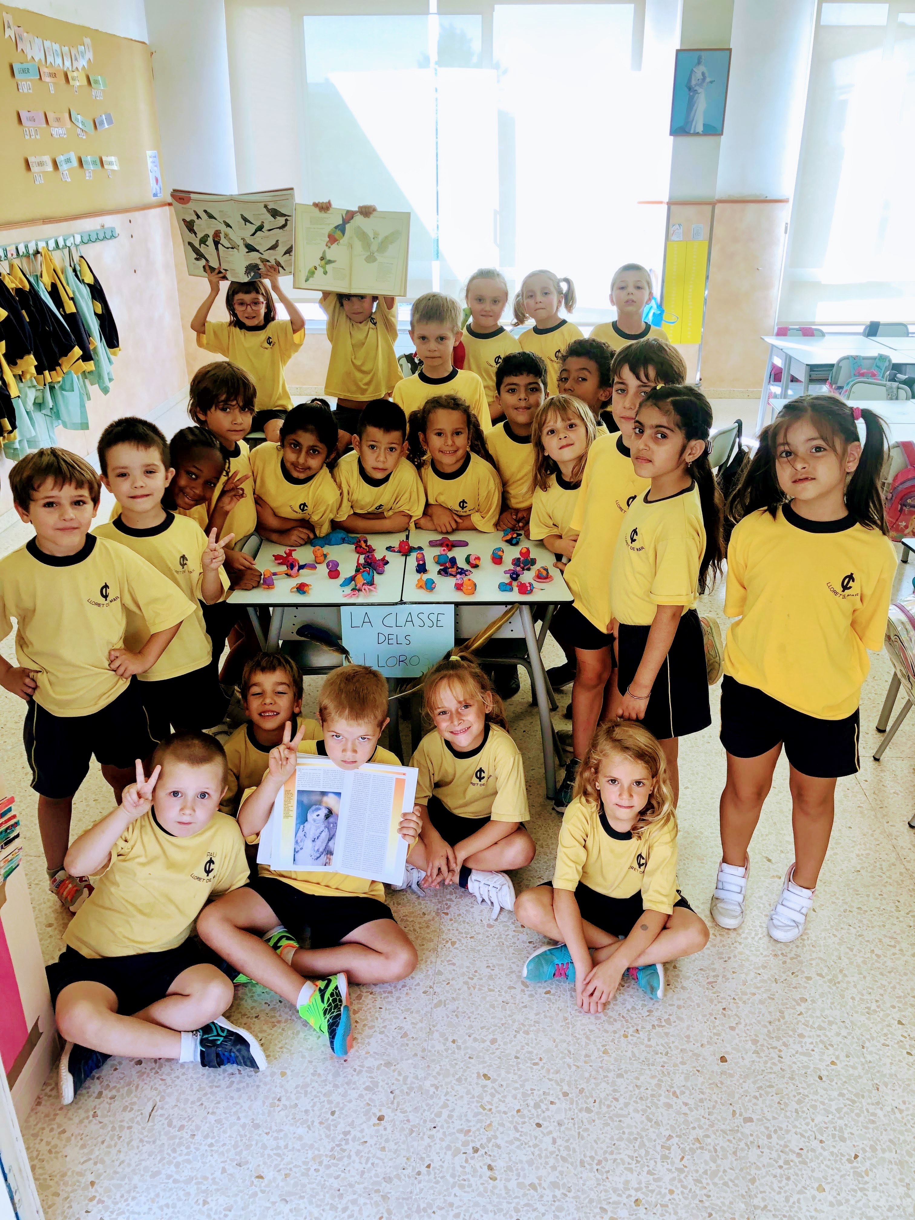Comença un nou curs i volem triar un nom per la classe. Les nenes i els nens de 1r-A hen escollit ser la classe dels lloros i els nens i les nenes de 1r-B hem votat que som la classe dels gats. Clica les fotos per veure’n més.