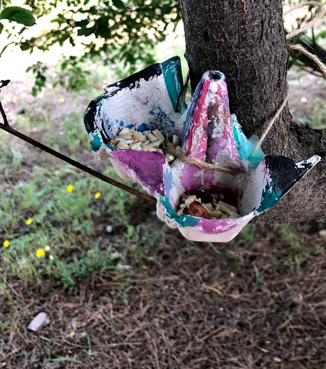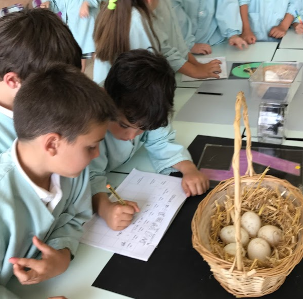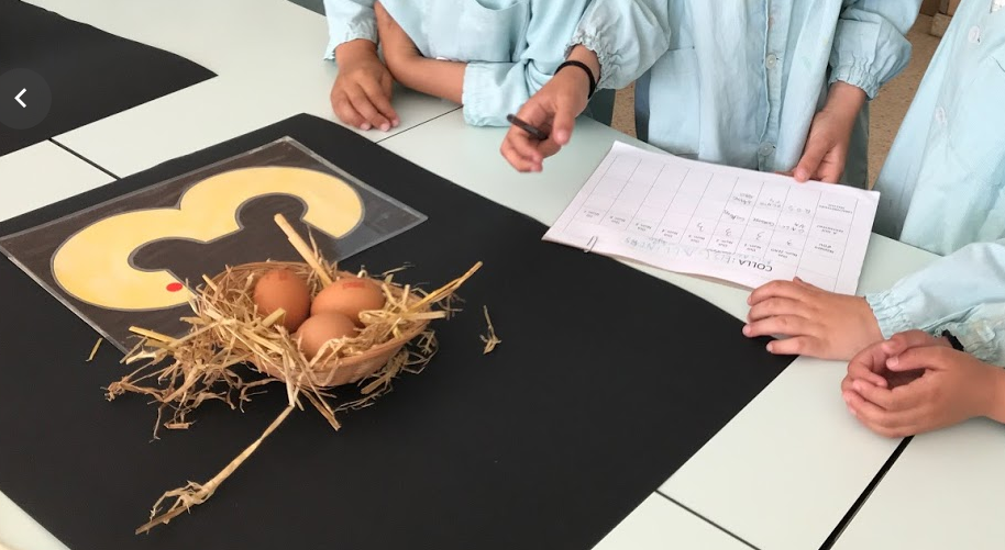 Després de treballar el tema dels ocells per grups cooperatius a les aules, ens trobem per fer-ho en grups intercicle. Serà un treball rotatori que durarà 4 setmanes. Hi ha un taller per conèixer com són els ous de les aus, un altre de fer menjadores per penjar als arbres del jardí. L’altre taller és per construir-los casetes-nius i un altre és per aprendre a reconèixer els seus cants.