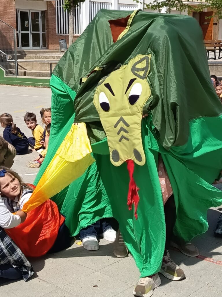A la tarda el grup de pares de l’escola que ens preparen obres de teatre ems han preparat una espectacular representació de Sant Jordi.
