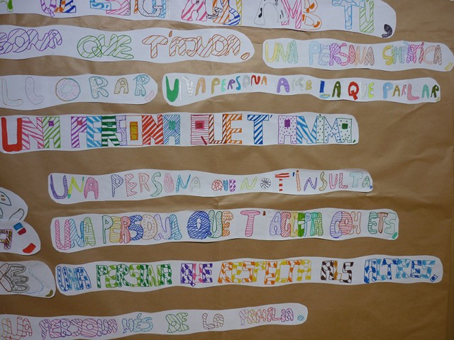 Definicions d’amic admin13/04/12 Amb els de 5è hem fet uns murals gegants amb les definicions d’amic que cadascú ha escrit en una tira de paper. El resultat ha estat el següent: 5è A 5è B