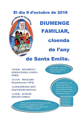 Us convidem a l’acte de cloenda de l’any d’Emilie que celebrarem a l’escola el proper diumenge dia 9 d’octubre. No falteu, us esperem!!!