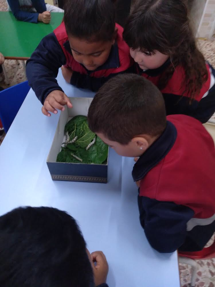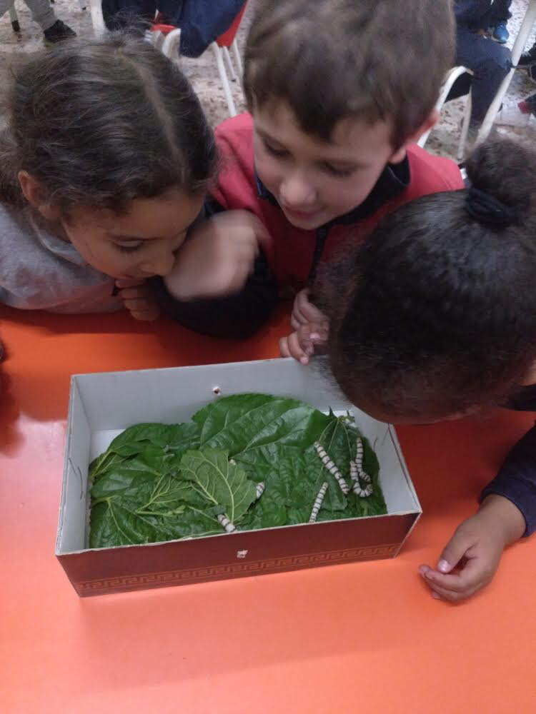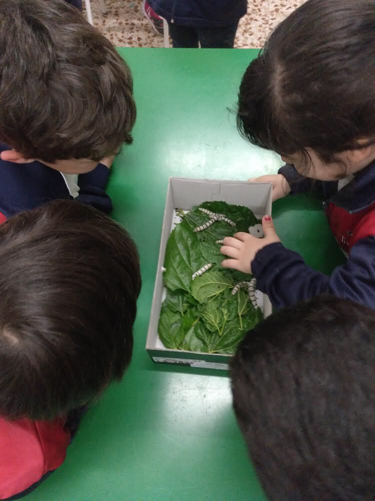 Una companya dels coets de P4 ha portat cucs de seda a l’escola. Estaven guardats dins d’una caixa amb fulles de morera. Els hem pogut observar i tocar. També hem parlat de la transformació que pateixen. I vosaltres, sabeu en quin animal es transformen?